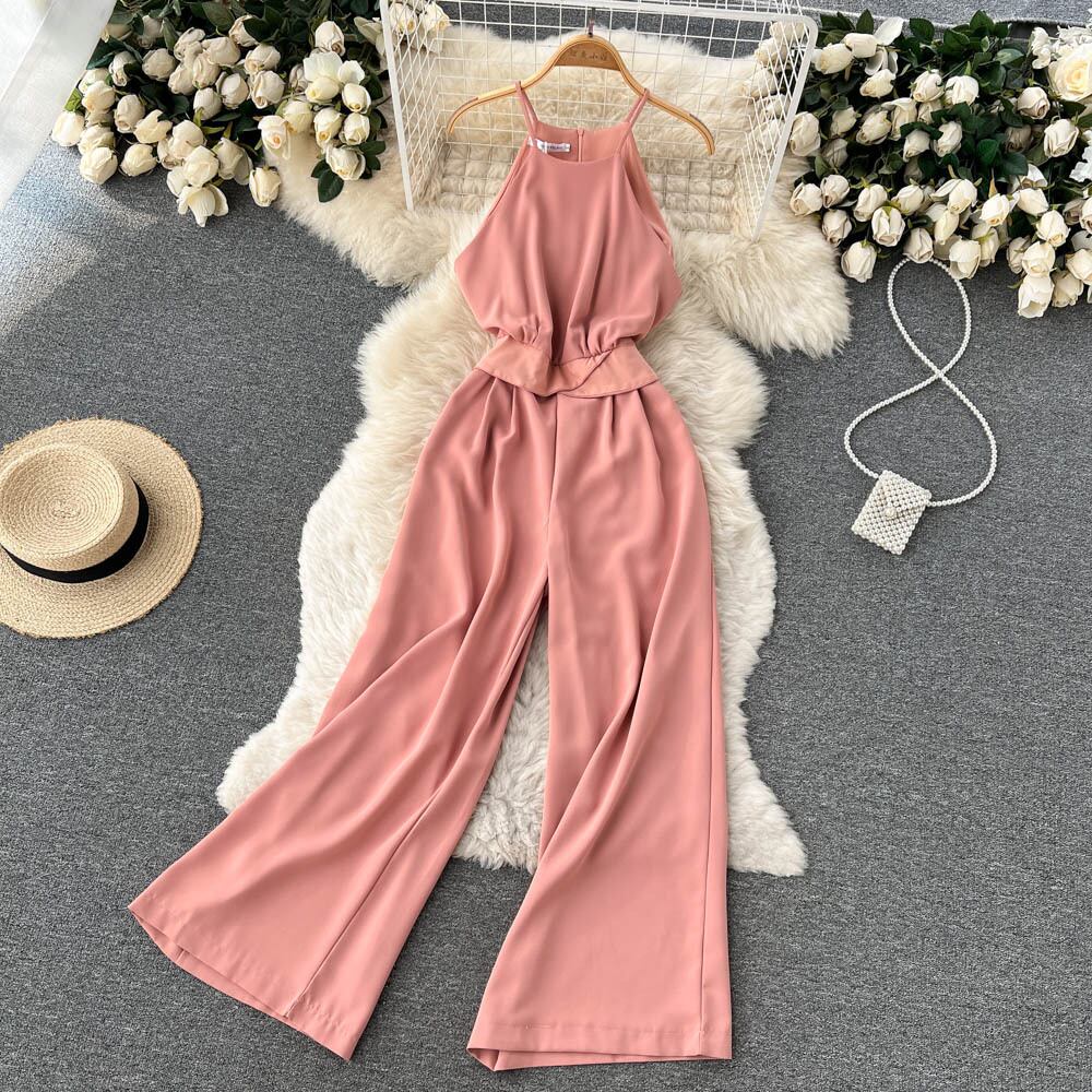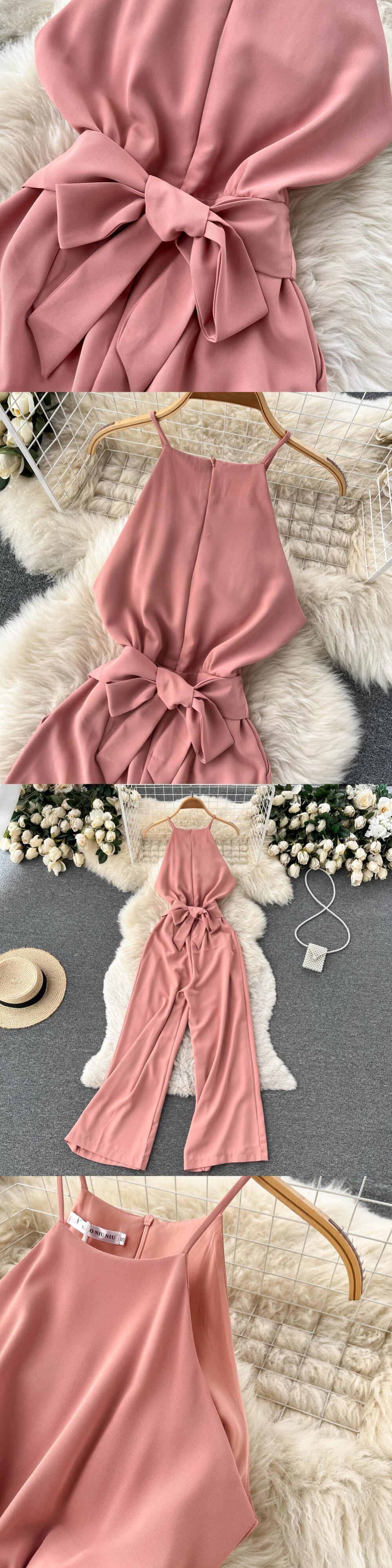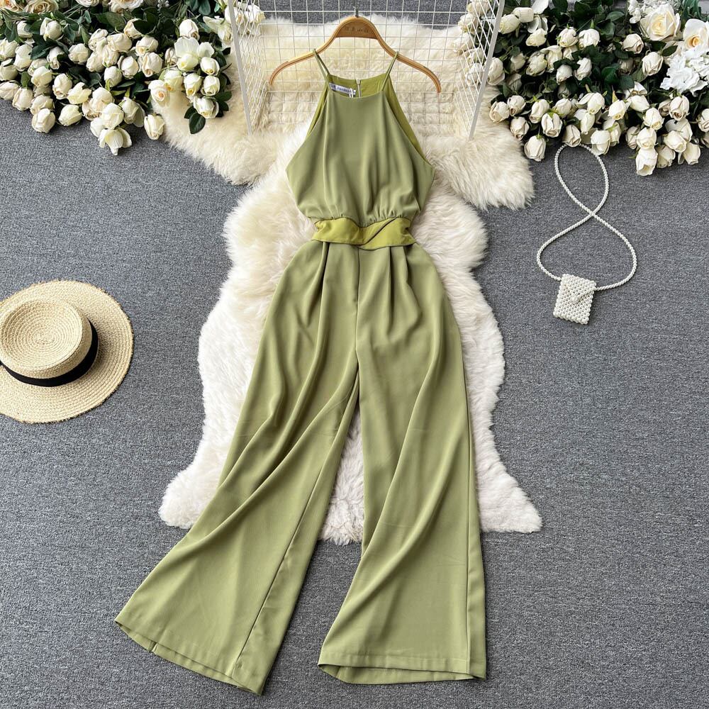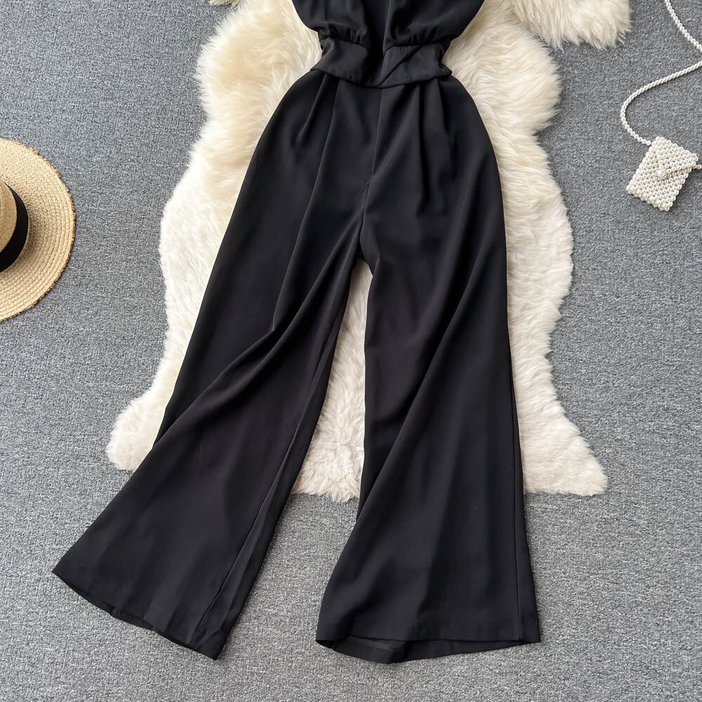 レースアップ ハイウエスト ドレープ ジャンプスーツ 2022年 夏 着痩せ レトロ エレガント ホルターネック レディース風 ワンピース ワイドパンツ ハイウェスト サマー 夏物 lyxaj56188070583