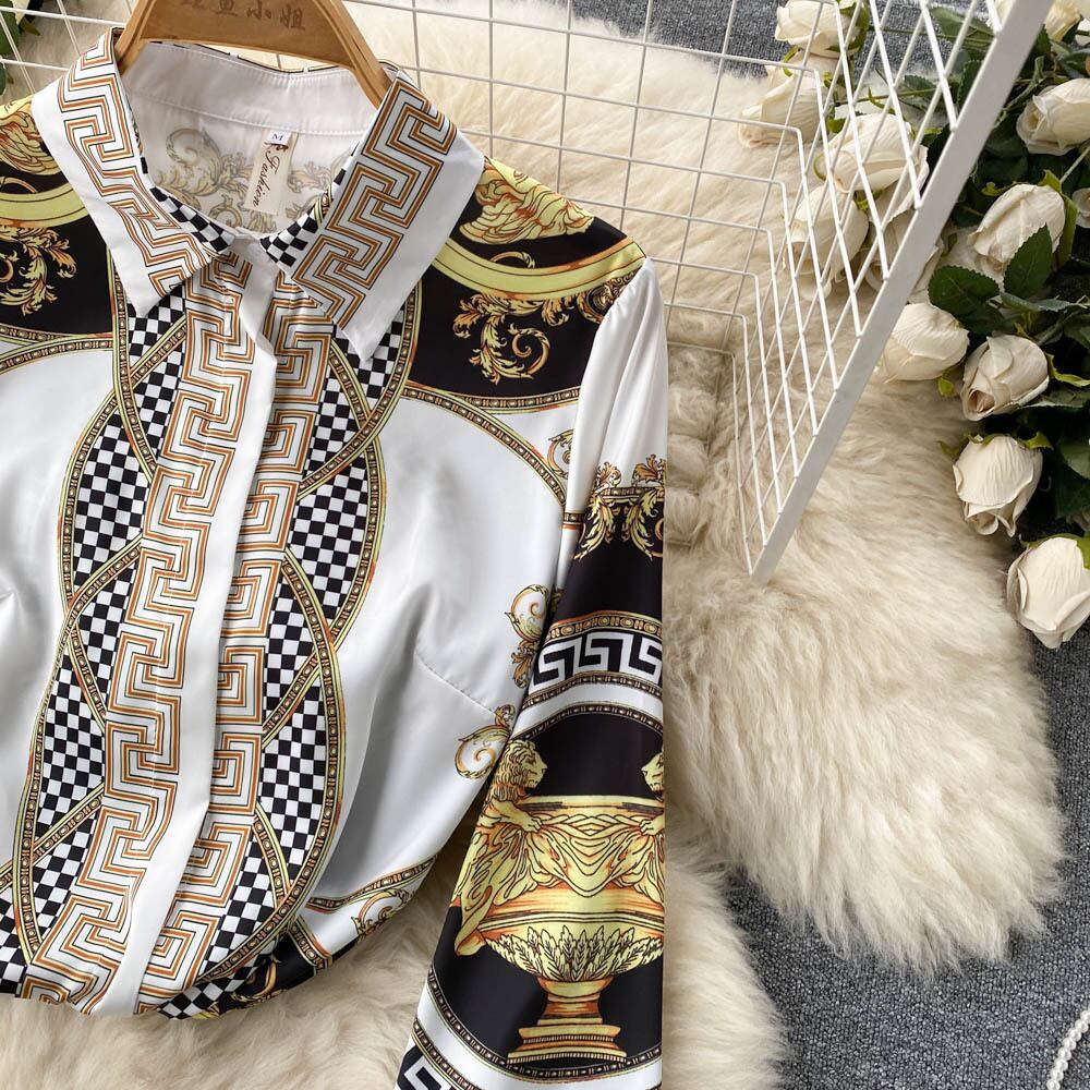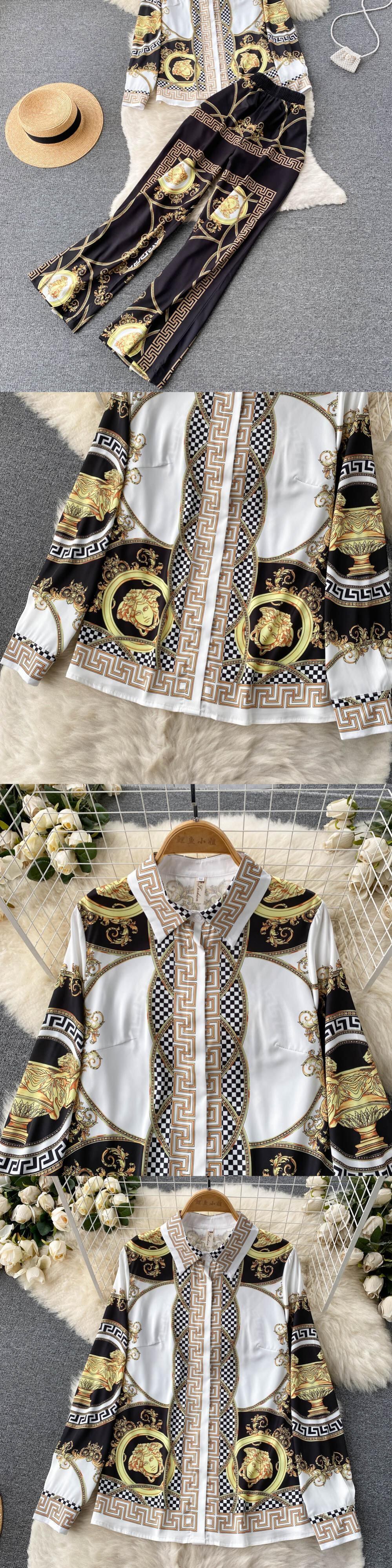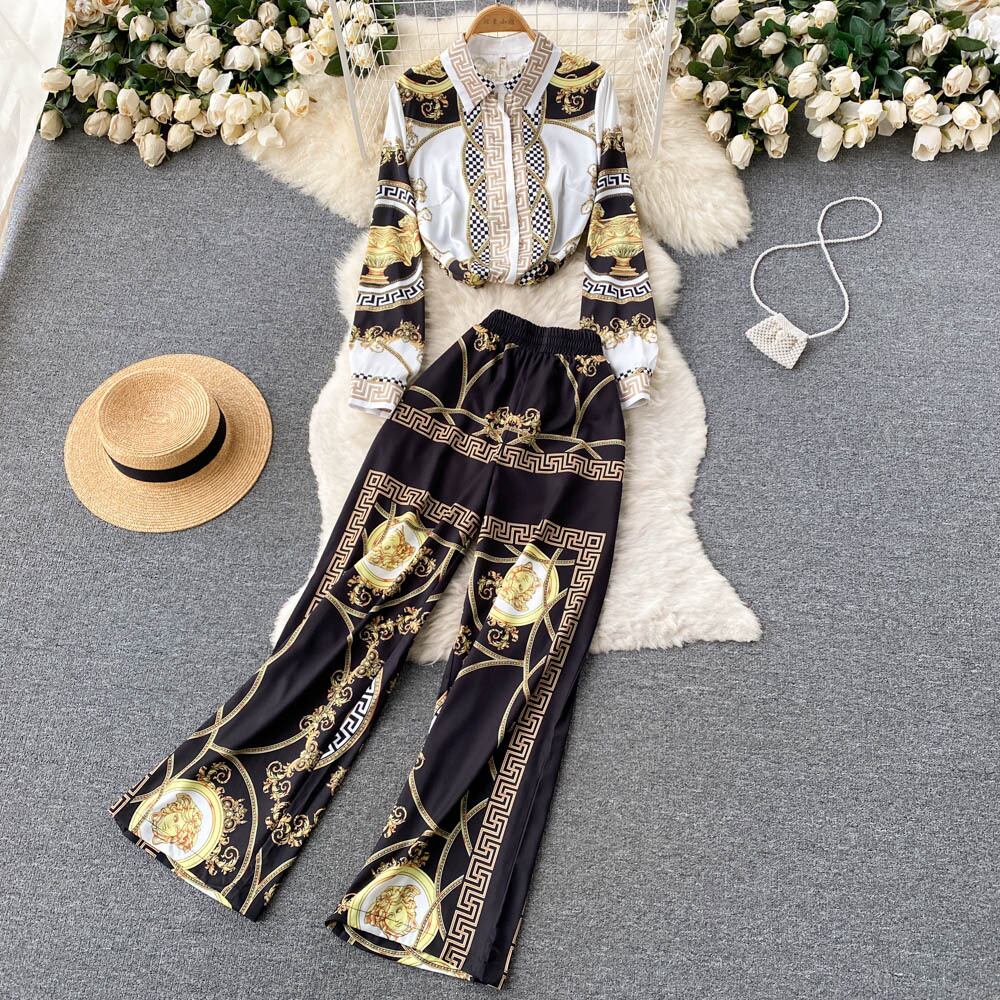 レトロな宮殿スタイルのスーツの女性のハイエンドの女性の気質のポロ襟のシャツ + ハイウエストのストレートのズボンの 2 点セット ハイウェスト レース lyxaj8786474327