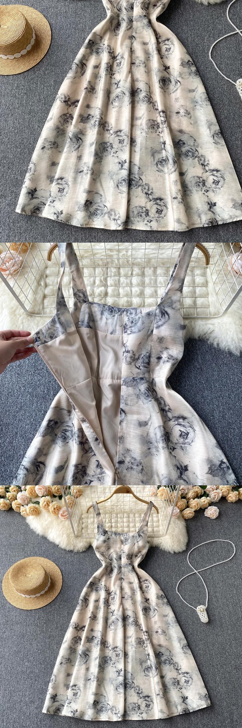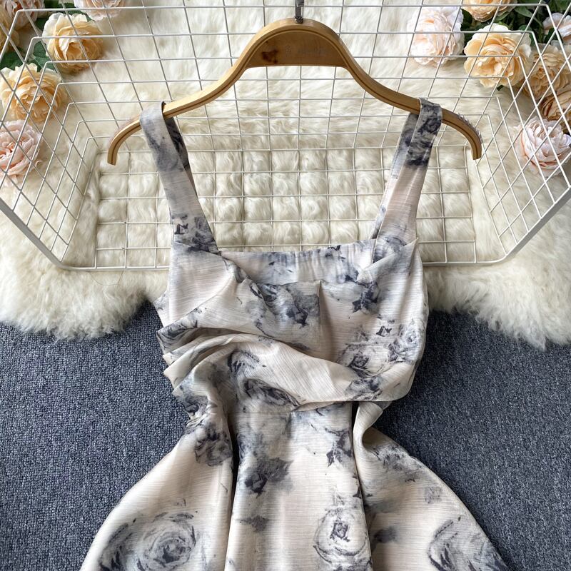 プリンセス風ティーブレイクフレンチハイエンドセンススクエアネックサスペンダードレス気質ウエストフェアリースカート大スイングAラインスカート スクウェア lyxaj49478104325