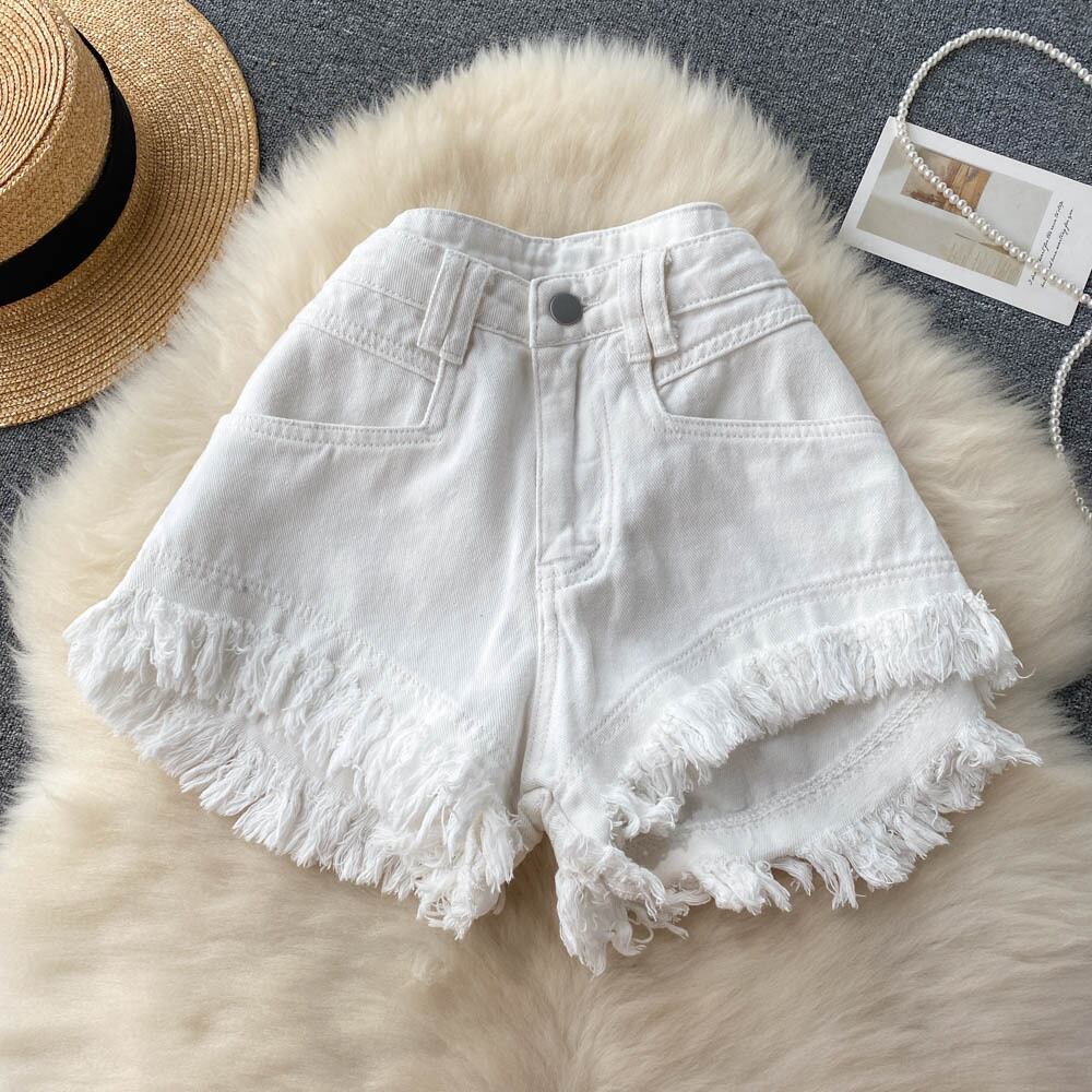 ニッチなデザイン感 生エッジ ゆったり ワイドレッグ デニム ホットパンツ ハイウエスト レディース 夏 薄手 2022 ネット レッドホットショーツ ハイウェスト サマー 夏物 ブルマー lyxaj53772584902