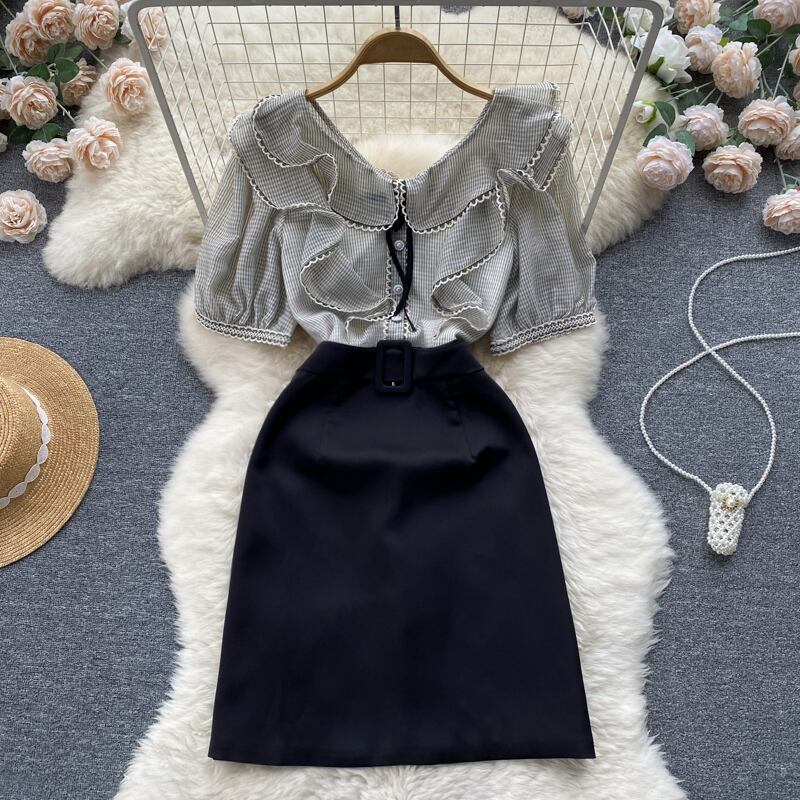 上質なステッチメッシュ半袖ドレスレディースデザインセンスニッチドールカラーヒットカラーライト馴染みスタイルヒップスカート lyxaj69404744801