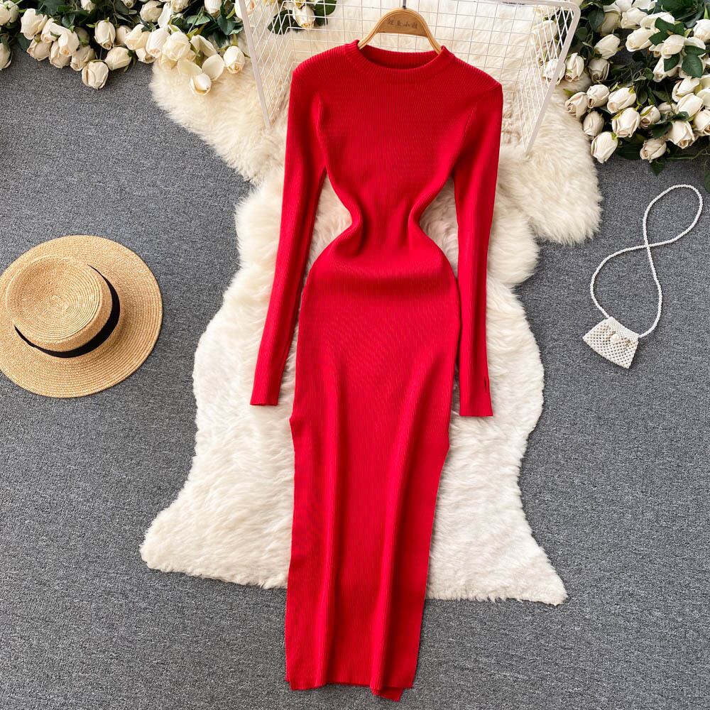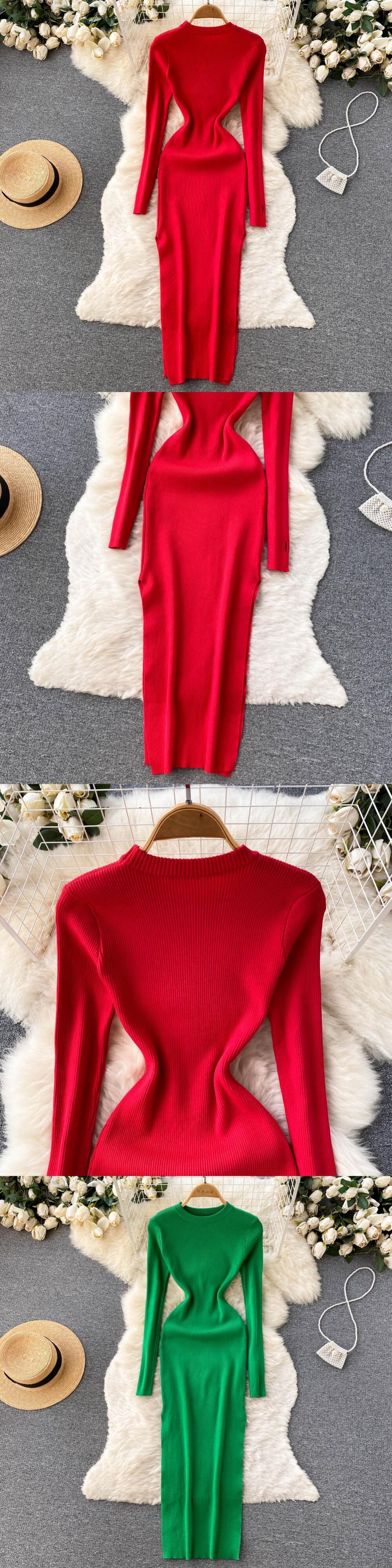軽やかで大人っぽいスタイル、スリムで薄いラウンドネックワンピース、夏の女性のハイエンドグリーン気質ニットヒップ丈ワンピース サマー 夏物 Oネック lyxaj82097430116