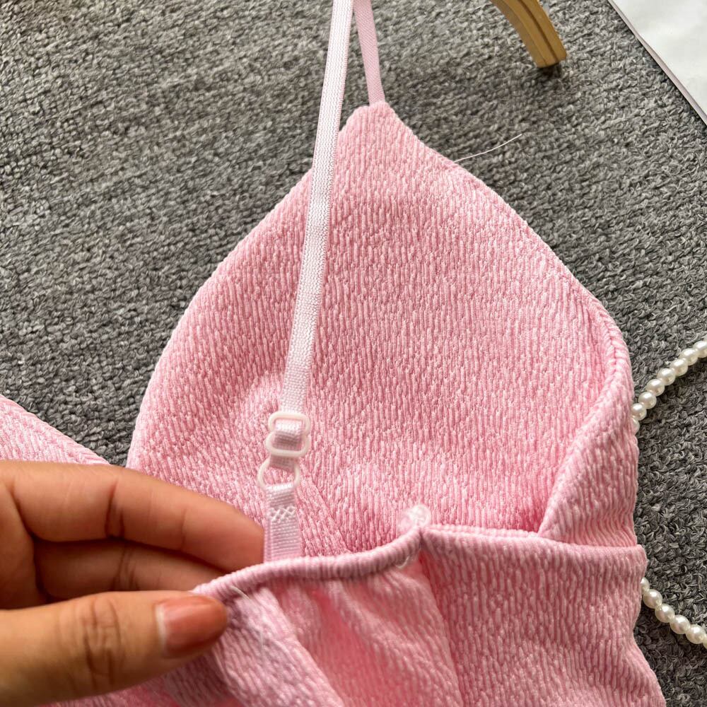 シンプル Vネック チューブトップ 下着 アンチグレア 美 バックラップ 胸元 デザイン センス ギャザー ブラ 女性 ボトムス キャミソール トレンド レッド lyxaj89309276283