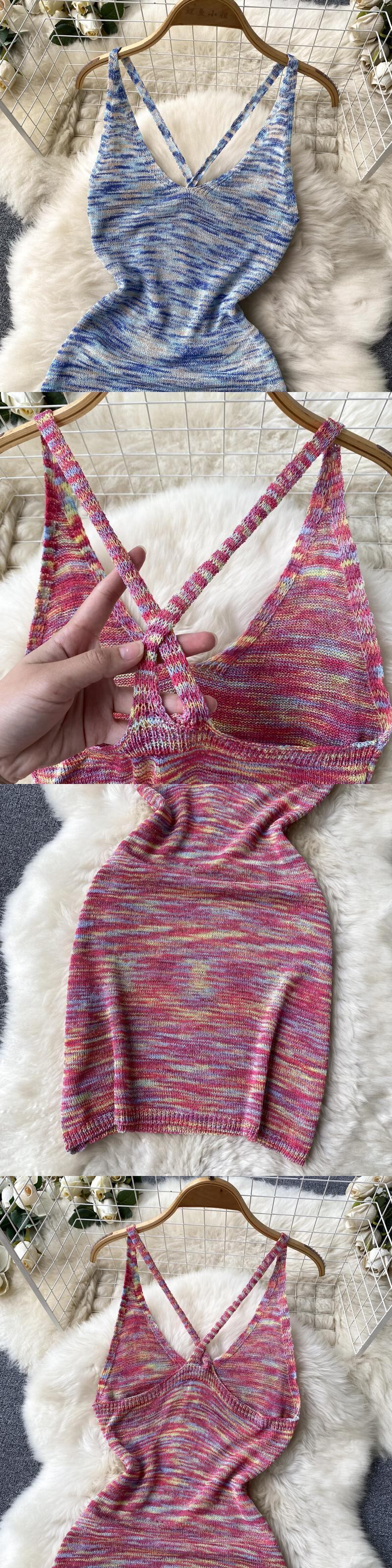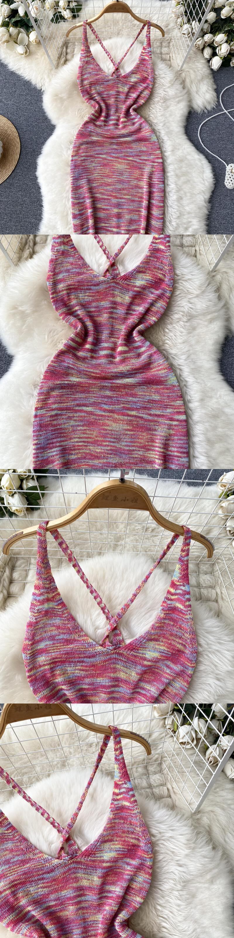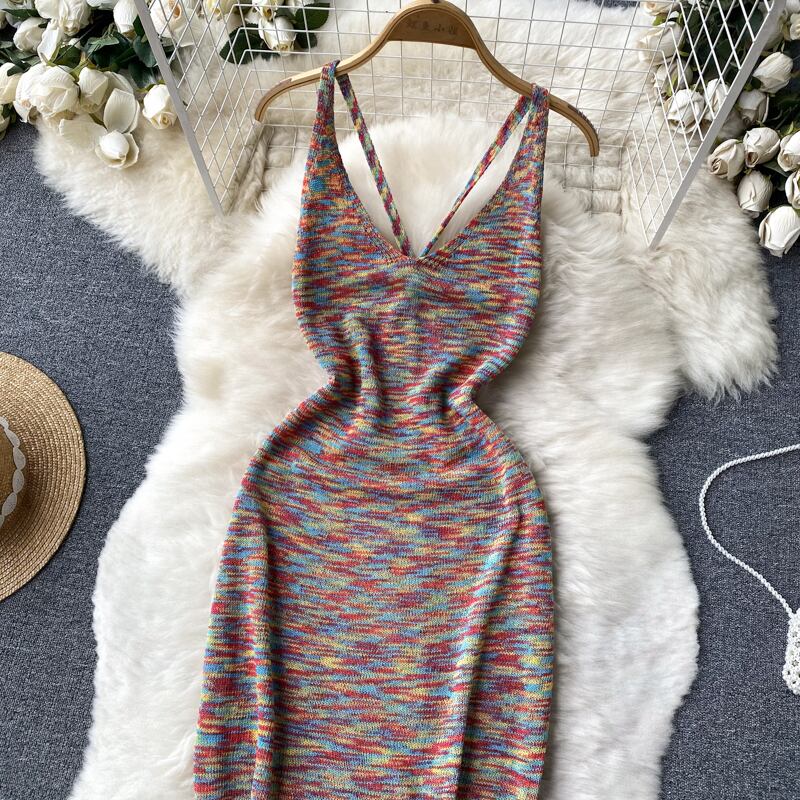 ヨーロッパとアメリカのシックな気質、見事な気質、サスペンダー ドレス、夏の婦人服、純粋な欲望、自己修養、痩身、ニット ヒップ スカート サマー 夏物 スリム ピュア ヨーロピアン lyxaj27603993944