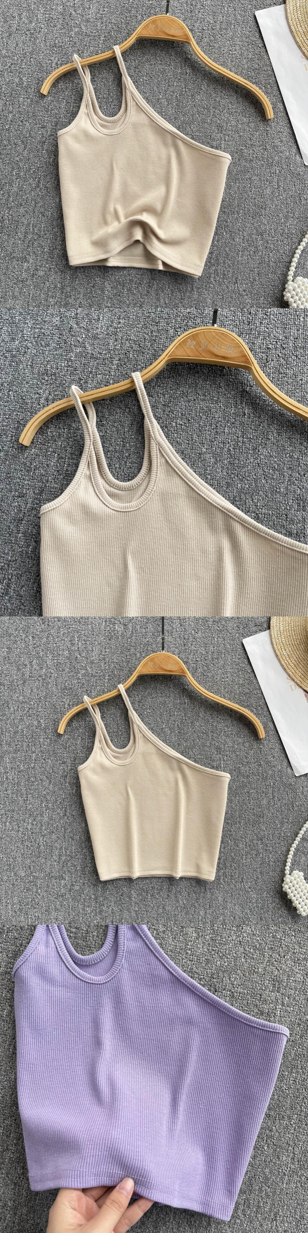 ヨーロッパとアメリカの女の子のセクシーな不規則なサスペンダー斜めの襟の一方的な肩の開いた背中のベストの女性は、外国のスタイルの弾性トップの潮を着ています エラスティック 伸縮 ヨーロピアン lyxaj90414064484