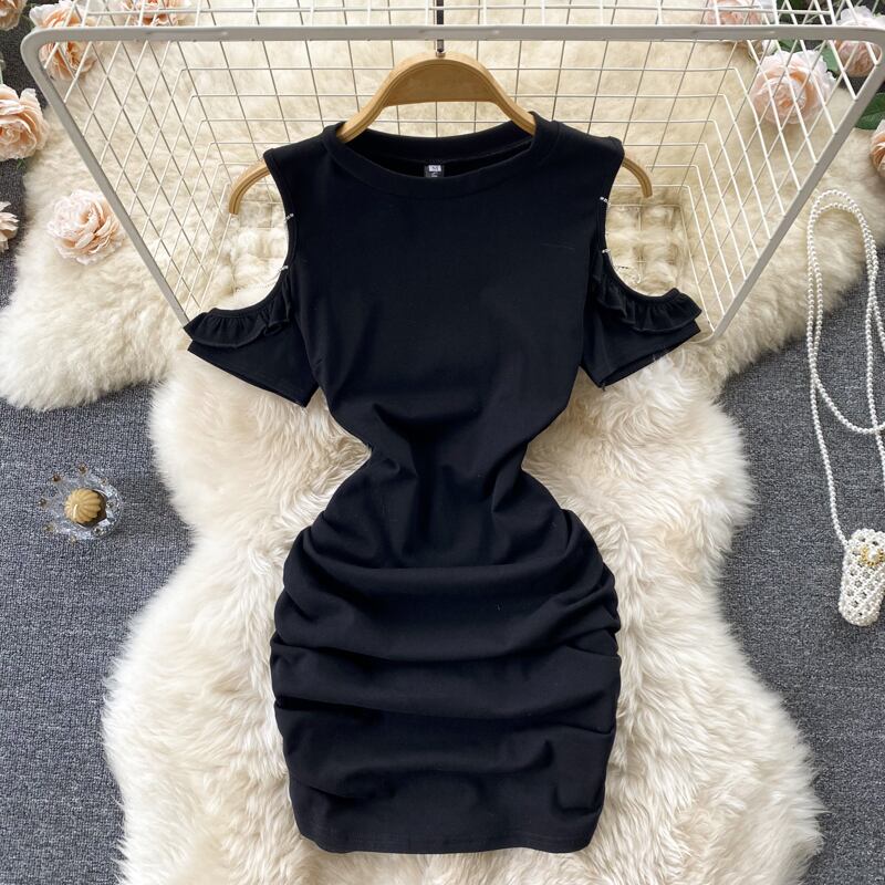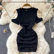 2022 summer new temperament dress round neck hollow out shoulder sexy pleated tight bag hip sexy short skirt ショート プリーツ サマー 夏物 スカート Oネック lyxaj54140163897