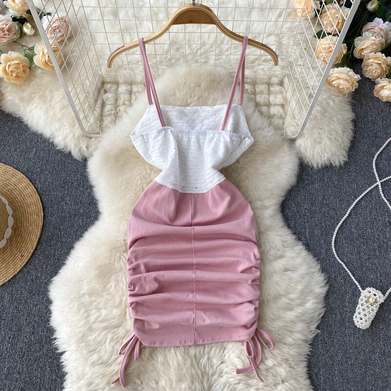 ピュアデザイストスタイル 超妖精 チューブトップ ドレス セクシー サスペンダー オフショルダー スリムフィット スリム プリーツ バッグ ヒップ ショートスカート 小夏 サマー 夏物 lyxaj91593276722