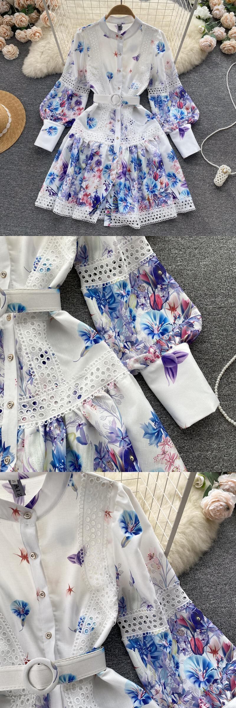エスニックスタイルウエスト痩身中空空気品質長袖ドレス夏の女性のフレンチシックな見事なプリントシャツスカート ロング サマー 夏物 lyxaj21026680789