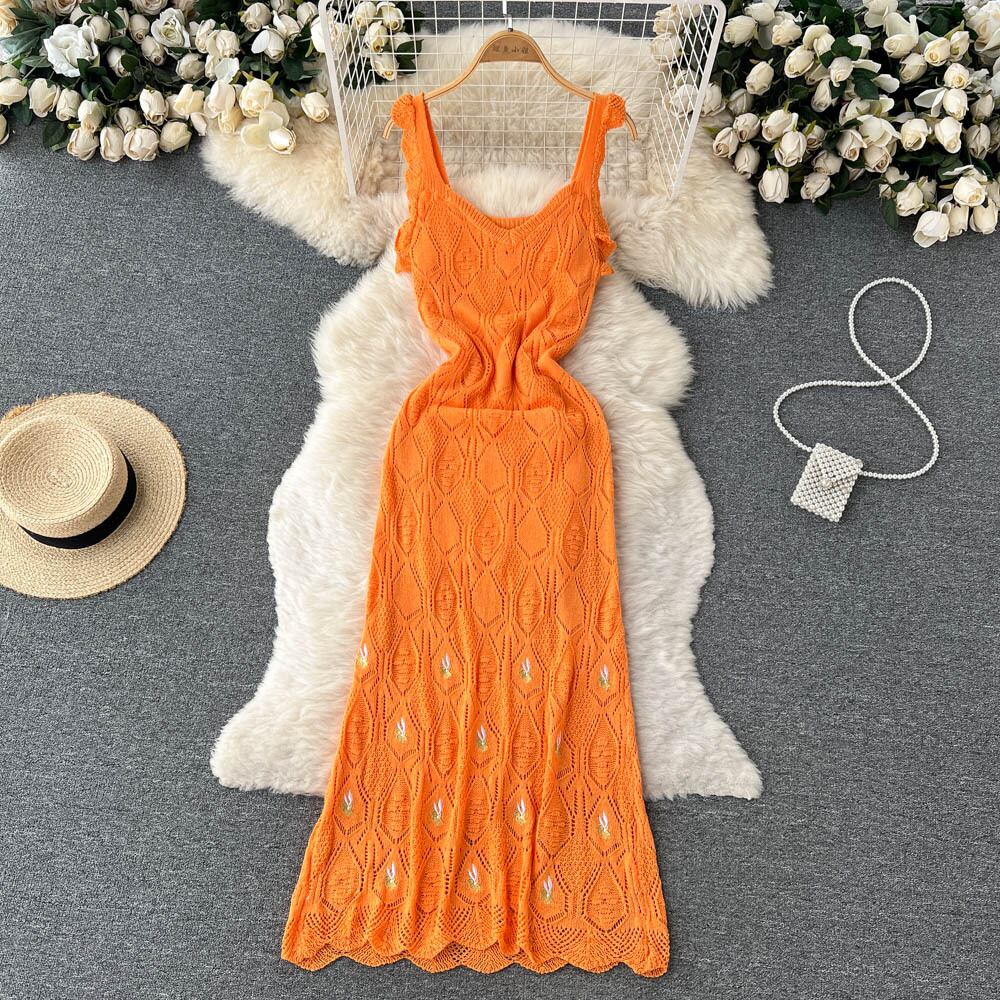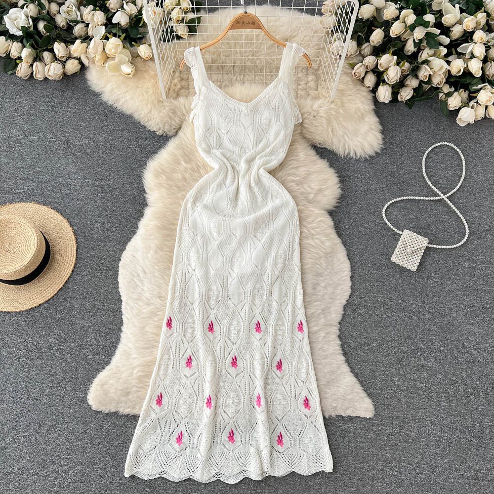 フレンチスウィート気質甘辛フライドストリートVネック中空刺繍ニットサスペンダードレススリムで優しいロングスカート 大人ガーリー キュート カジュアル lyxaj28189697266