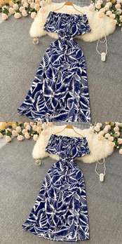 バケーション レディース ボヘミアン エスニック プリント ゆったり スイングスカート ワンショルダー ドレス スリット セクシー ロングスカート lyxaj7252640191