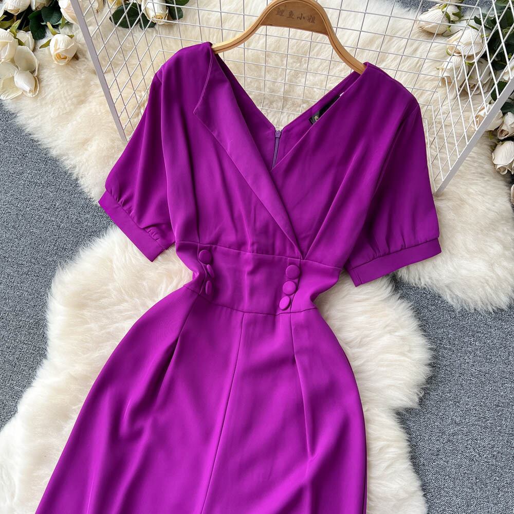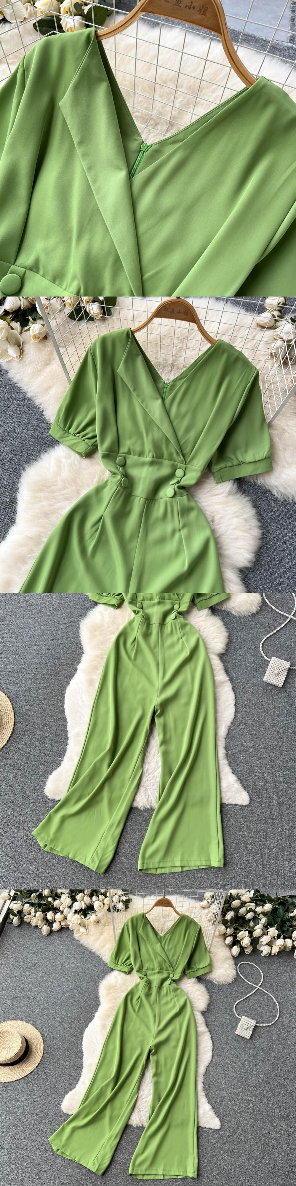 有名人の気質Vネック半袖ジャンプスーツの女性の2022年夏の新しいウエストと薄いカジュアルルーズワイドレッグジャンプスーツ サマー 夏物 lyxaj79796284905
