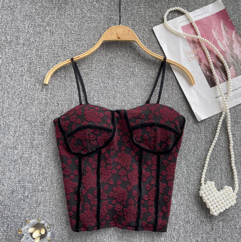 ネット 赤 セクシー オフショルダー 純情風 キャミソール ブラ オールインワン ボトムス 下着 美バック 女性 スリム ショート トップス レッド ピュア lyxaj65812289815