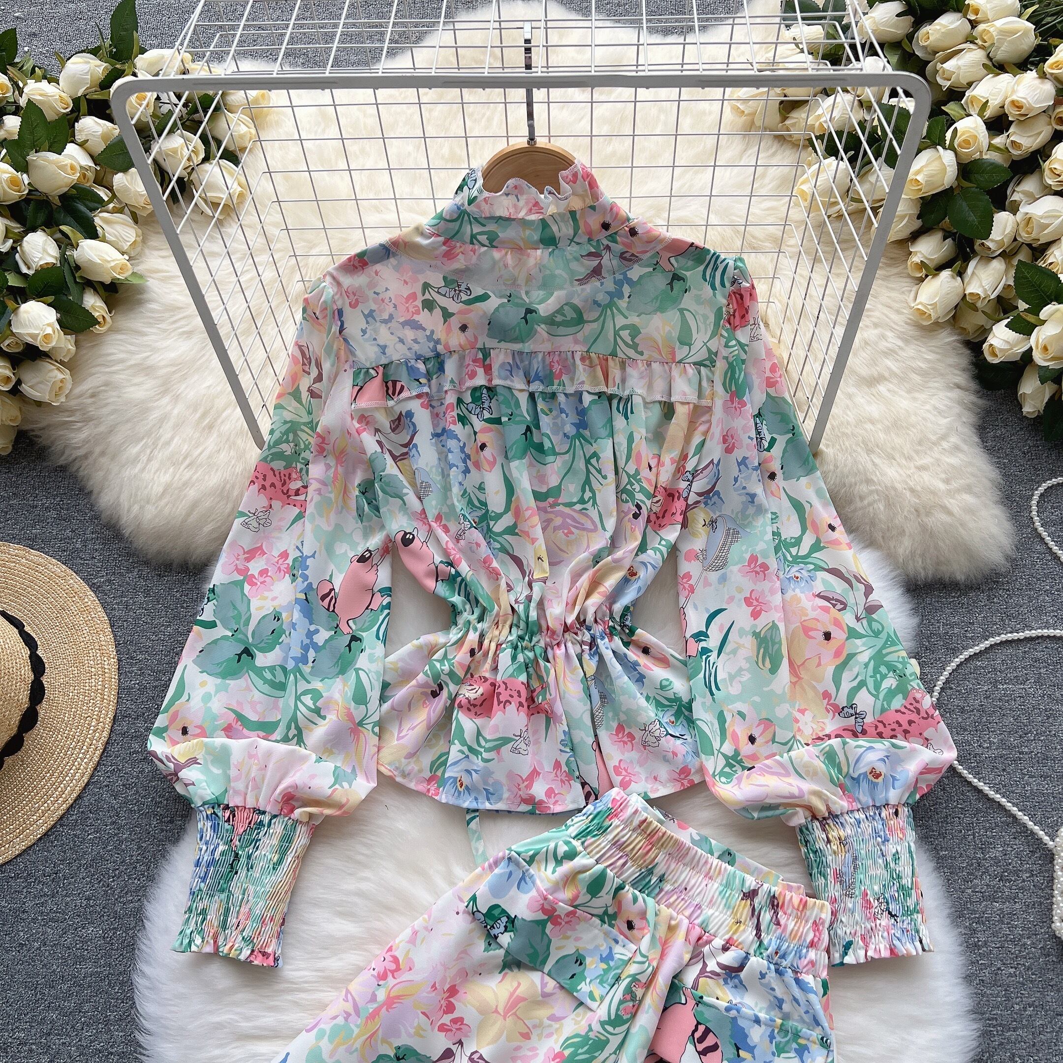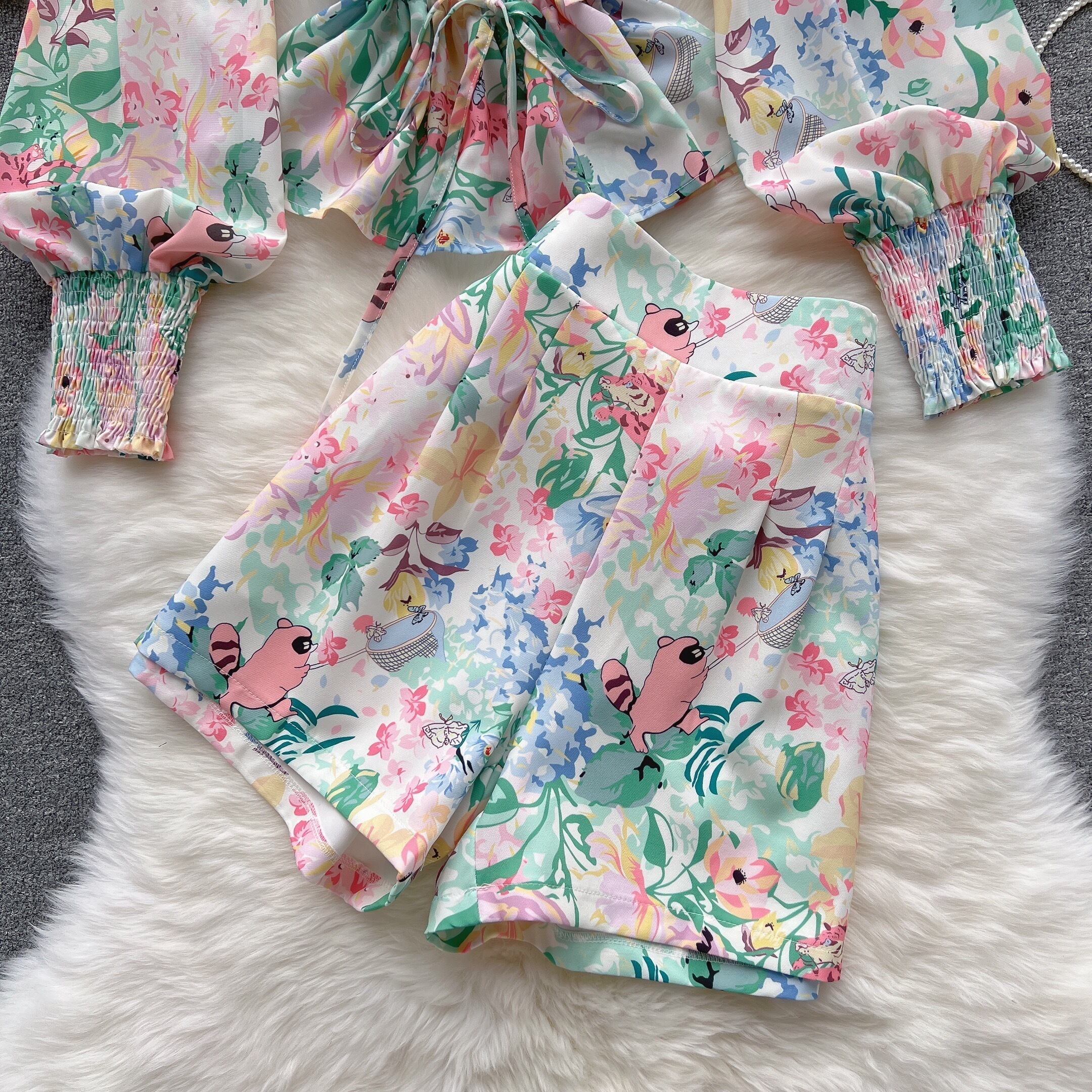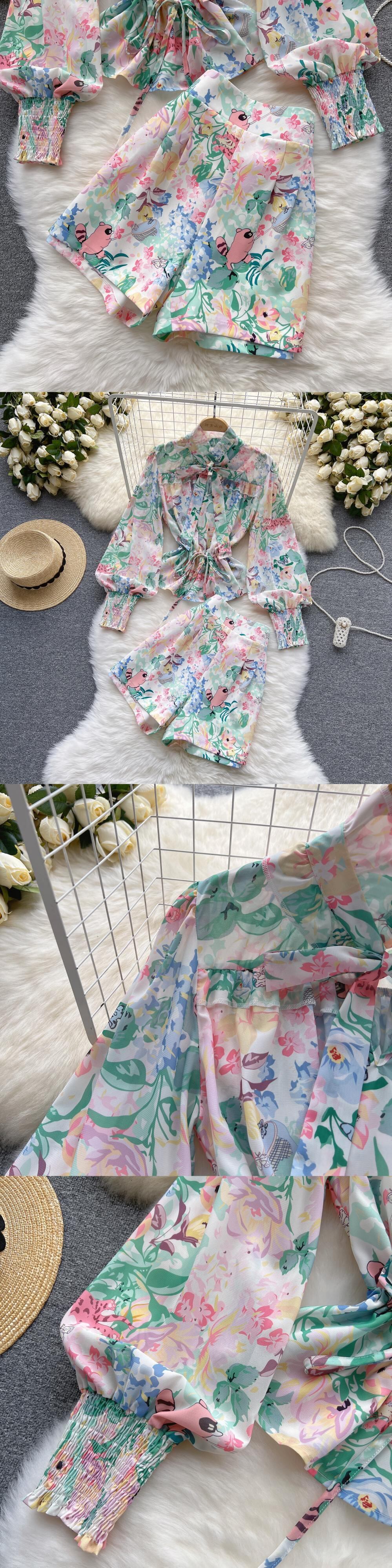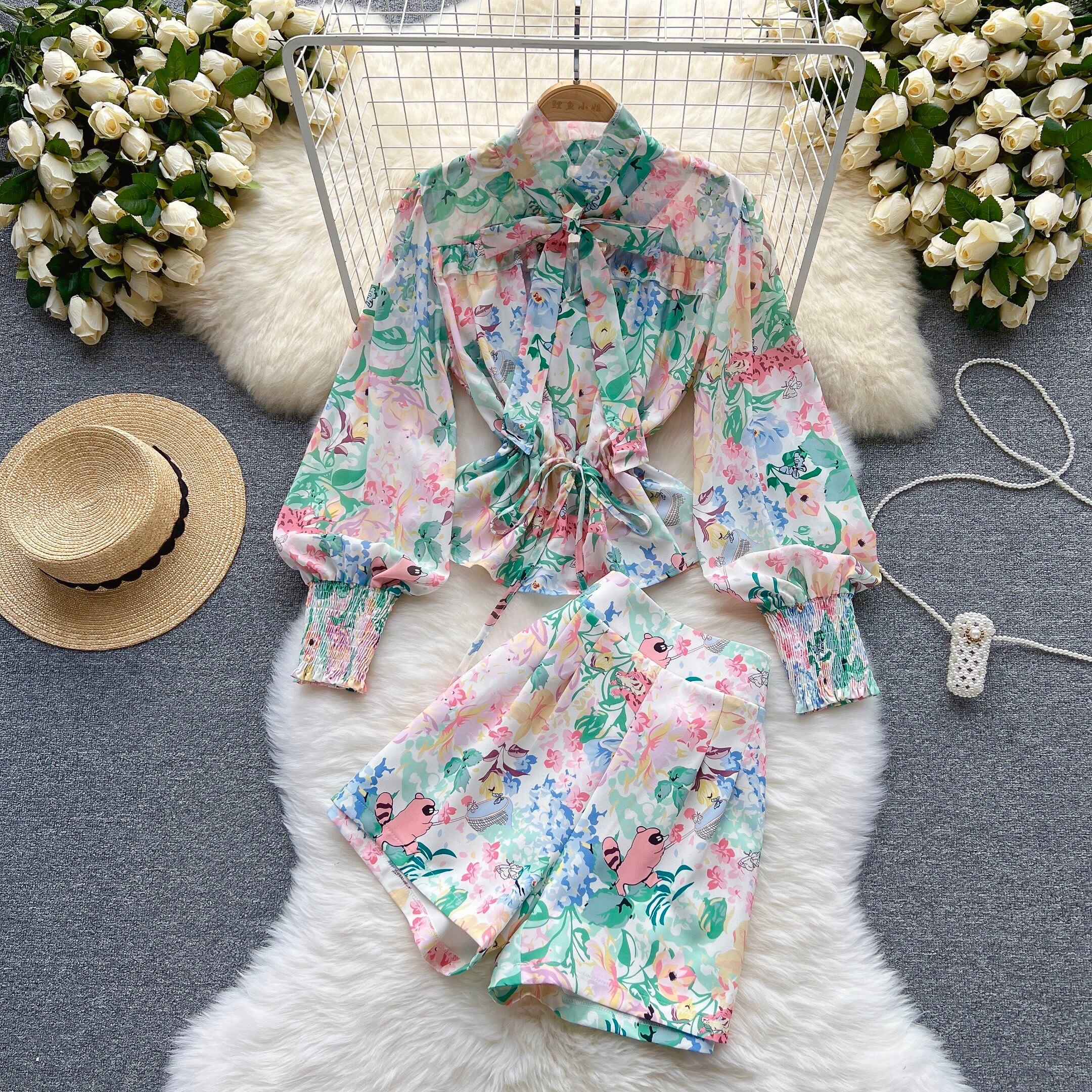 気質レディスツーピーススーツ レディース 春夏 新時代をさげるパフスリーブシャツ 洋風 ワイルド ワイドレッグ ショートパンツ トレンド スプリング 春物 サマー 夏物 ショーツ ブルマー lyxaj57618210325
