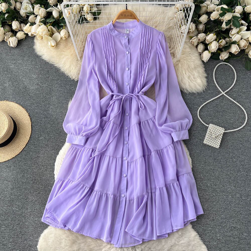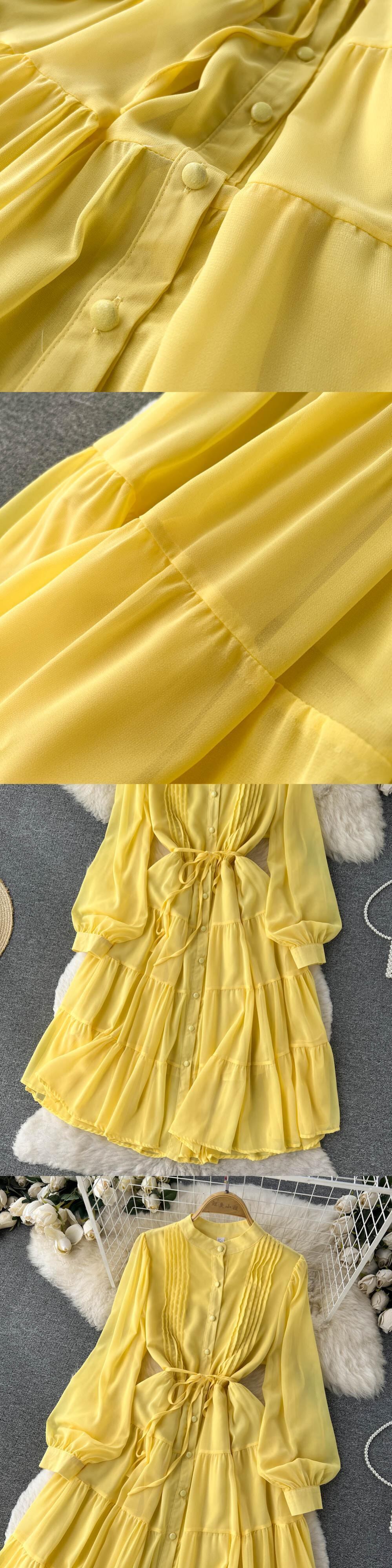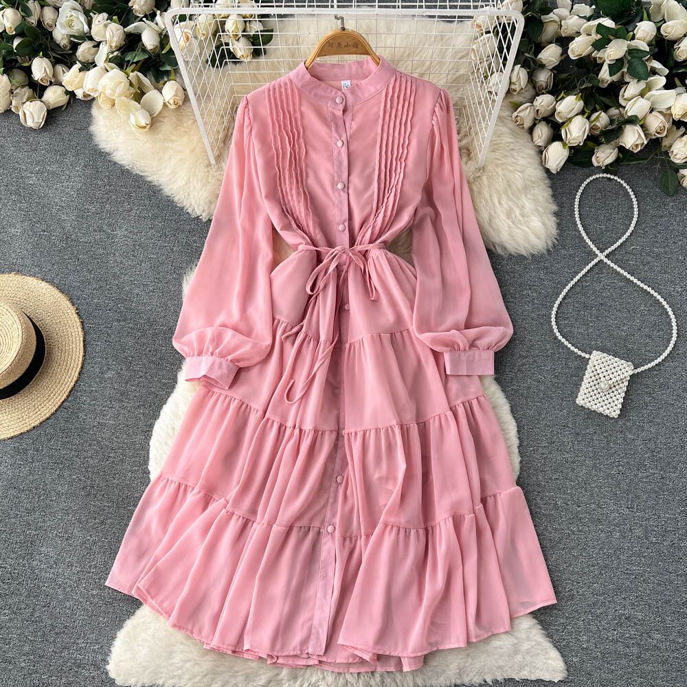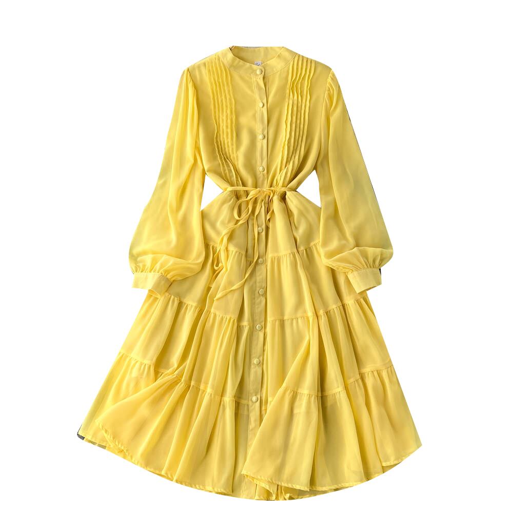 寒風ウエストスリム気質長袖ドレス夏の女性のフレンチシックなプリーツシャツロングスカートトレンド サマー 夏物 lyxaj75311118118