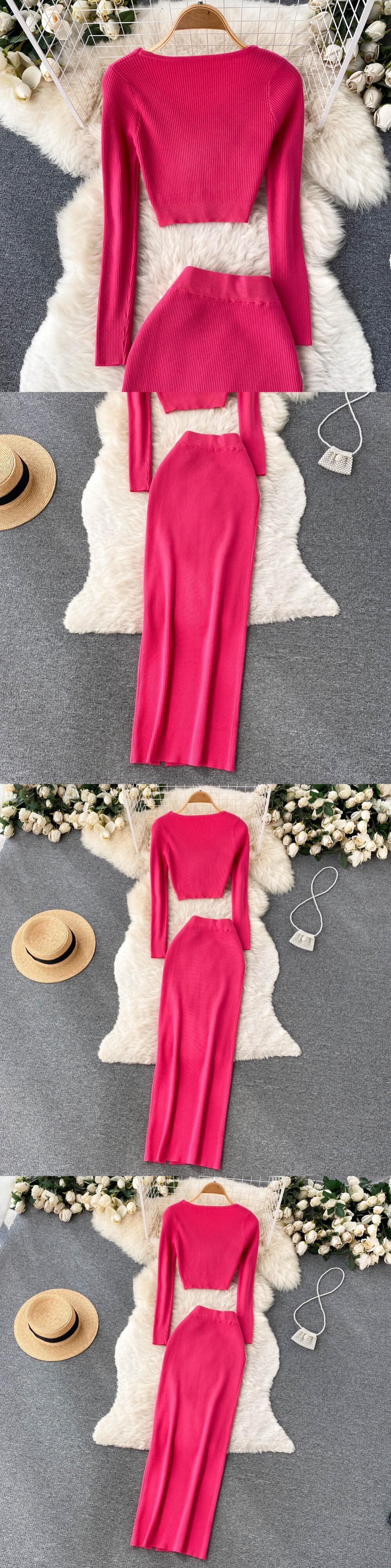 Light familiar style two-piece suit women's summer temperament short long-sleeved T-shirt top high-waisted slim-fit slit bag hip long skirt ショート ロング サマー 夏物 スカート Tシャツ lyxaj25331403508
