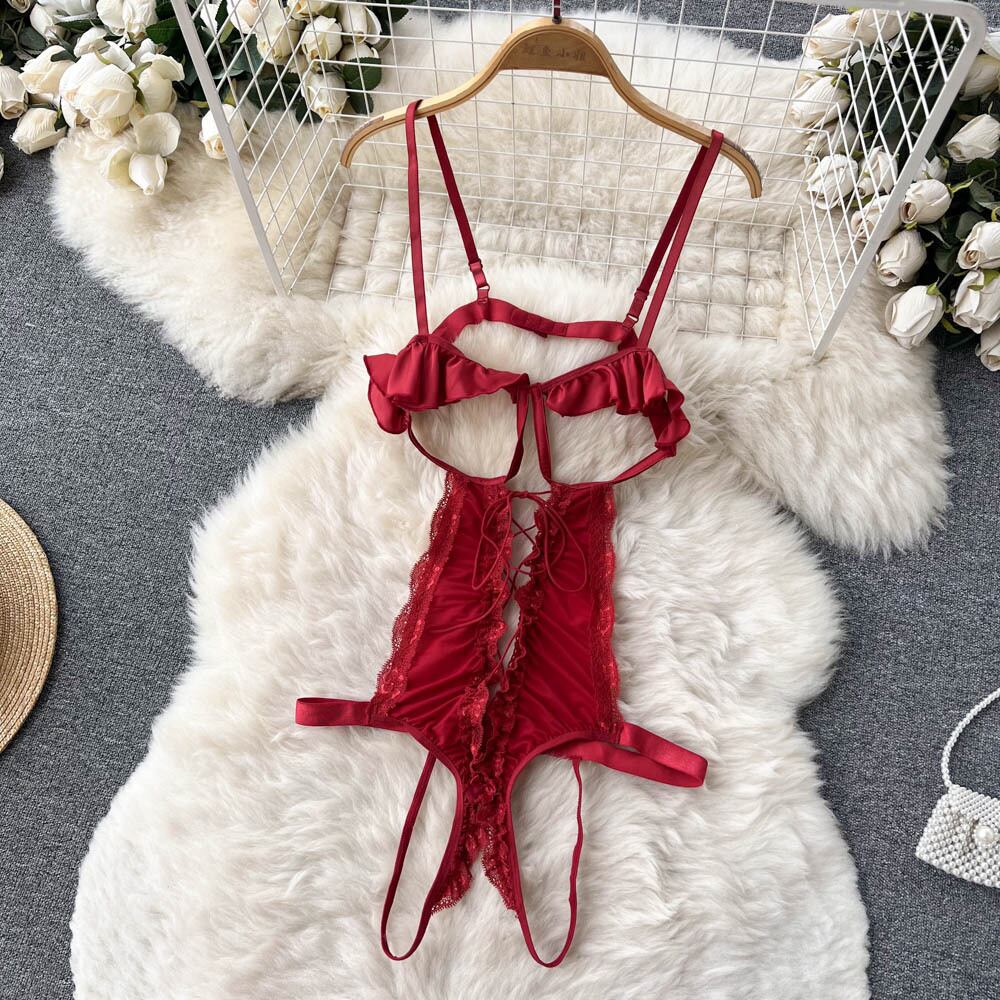 ナイトクラブスタイル中空セクシーなジャンプスーツオープンファイル中空女性新しいホットガールフリルセクシーな制服ボトムパンティー lyxaj36142217568
