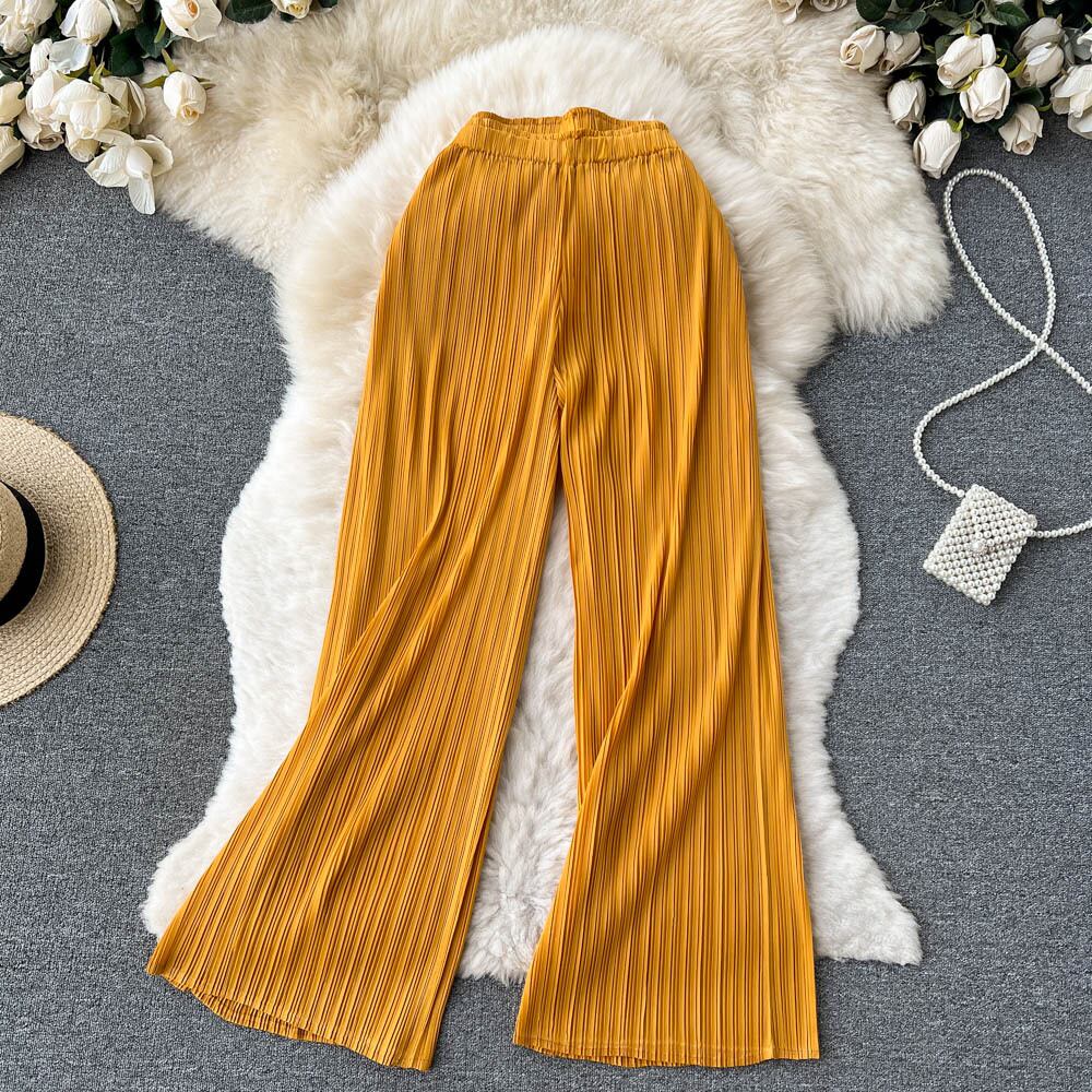 無地オールマッチカジュアルパンツ女性の2022年夏新作重工業プリーツ淑女気質大振りゆったりワイドレッグパンツ サマー 夏物 ソリッドカラー lyxaj91580472836