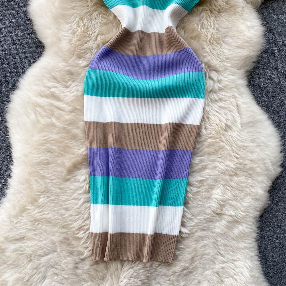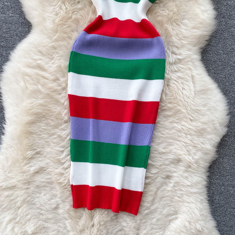 少数派ヒットカラースリングニットドレスの女性の夏の新しいスリムバッグヒップロングスカートのファッションデザインセンスの韓国語バージョン サマー 夏物 lyxaj24571049990