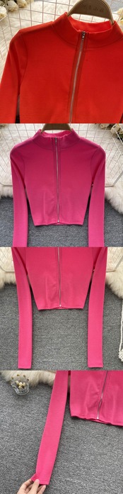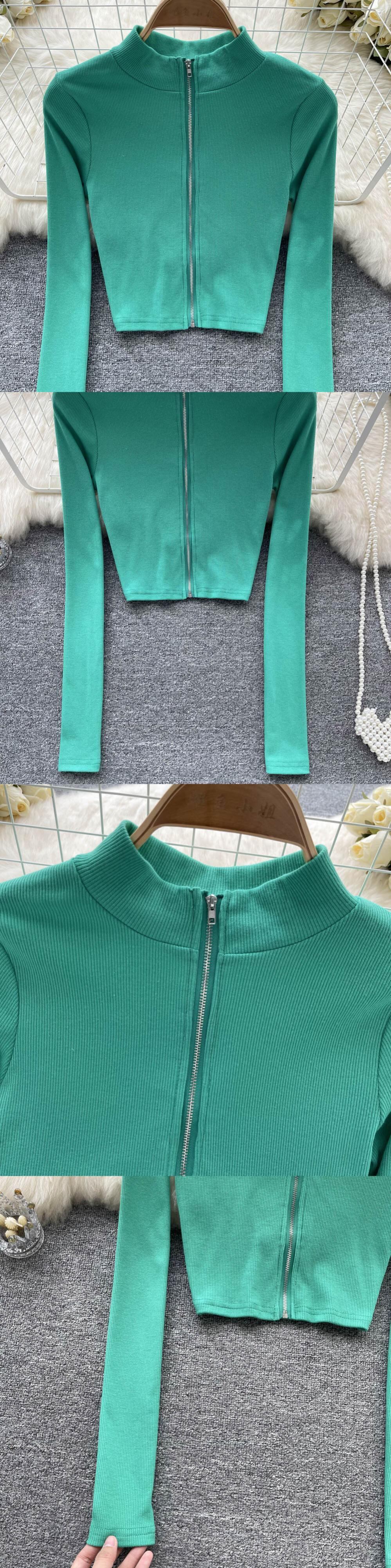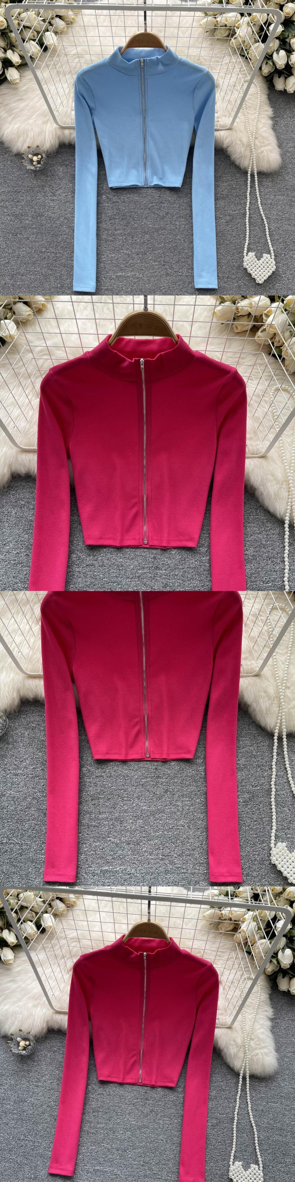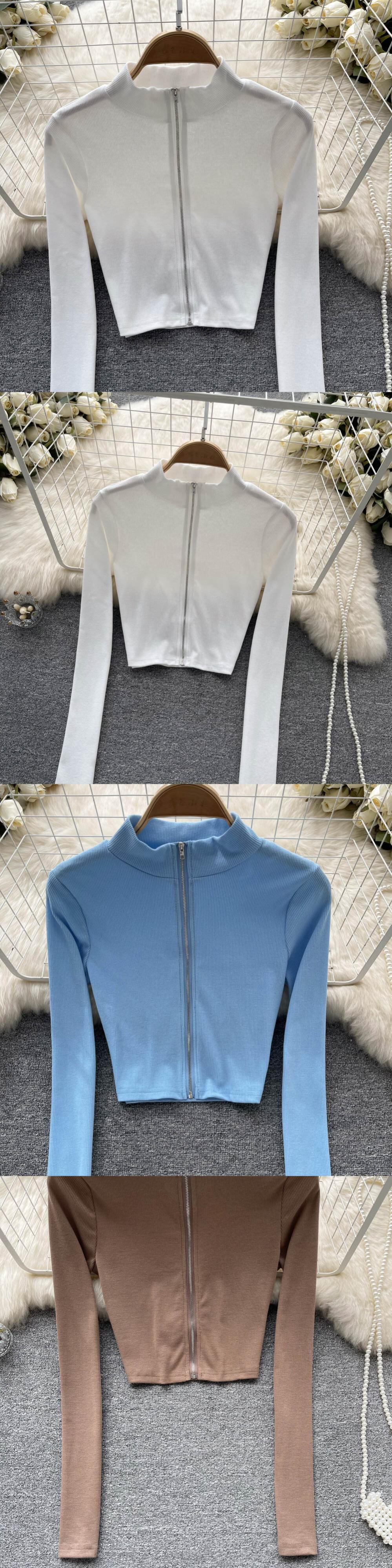 ホットガールホワイトショート長袖Tシャツレディース秋アメリカンレトロニッチデザインセンスジッパーハーフタートルネックトップ服 ロング オータム 秋物 lyxaj23955842540