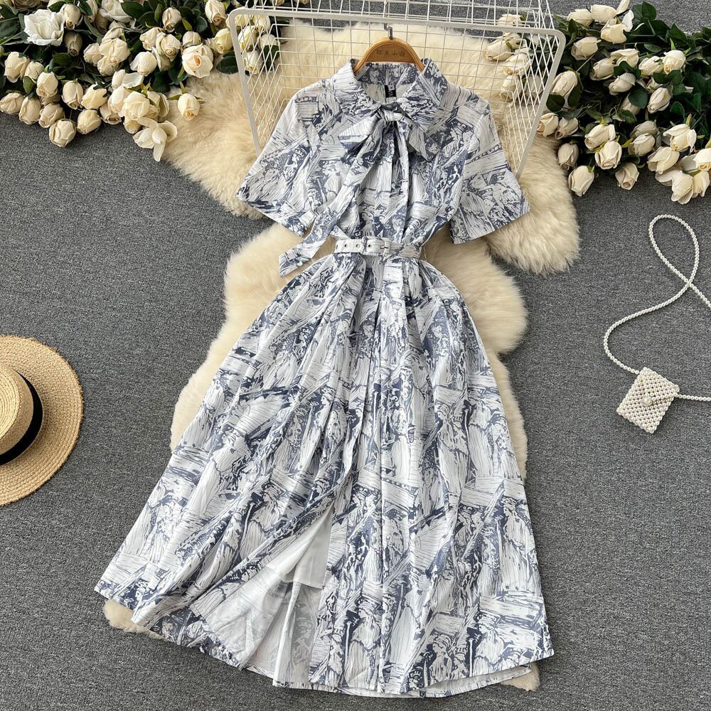 フレンチ ドレス 2022 夏の新しいエレガントな気質花柄レースアップ ウエスト見事なハイエンド A ライン ドレス サマー 夏物 Aライン lyxaj98949316457