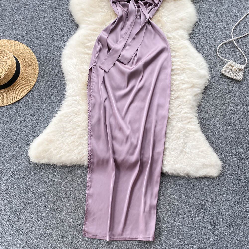 French careful machine sexy satin dress female summer new side slit temperament suspender skirt light luxury long skirt trend ロング サマー 夏物 スカート サテン lyxaj58482444969