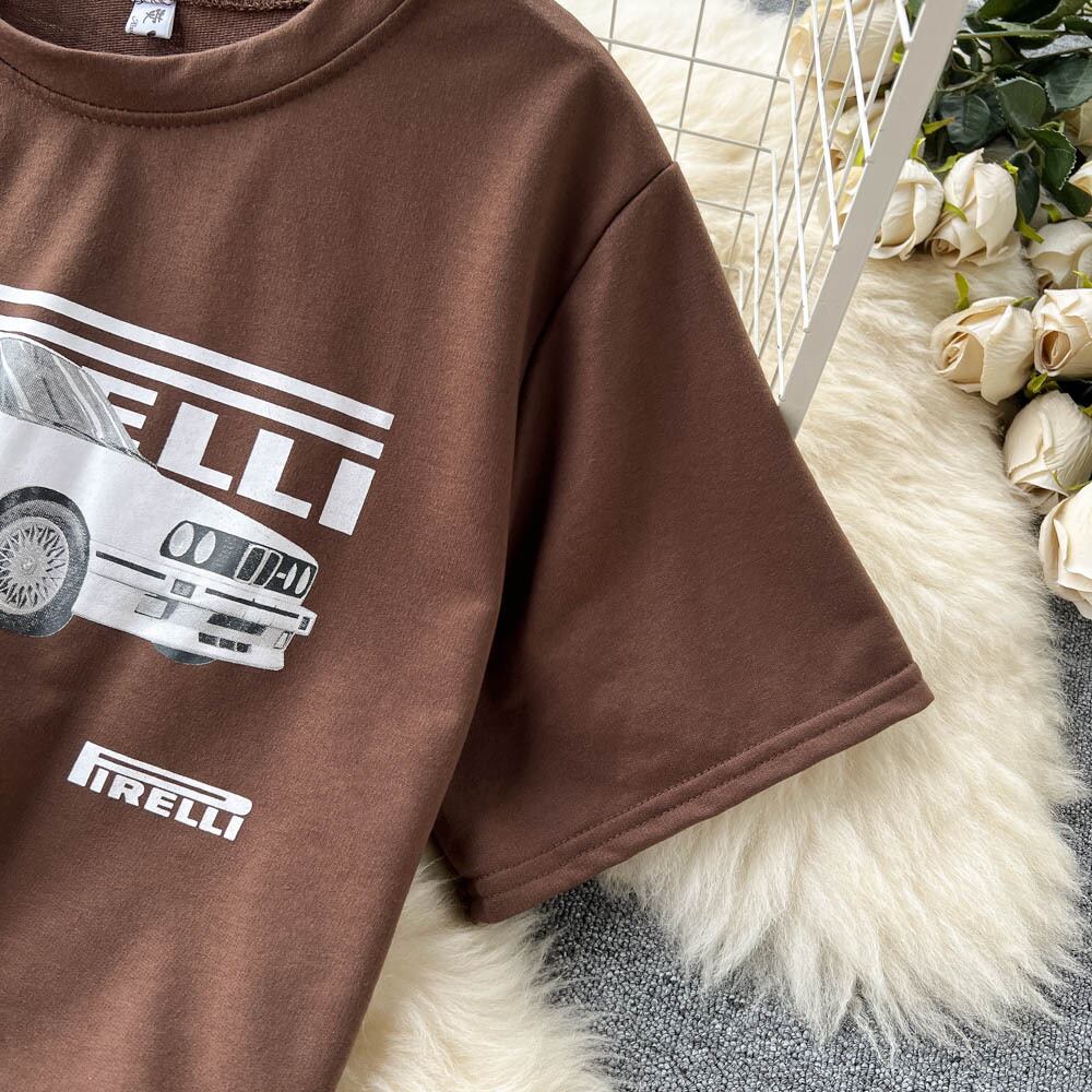 香港風カジュアルスーツ女性レトロニッチショートプリント半袖Tシャツ+スプリットミドル丈スカート2点セット lyxaj49918801852