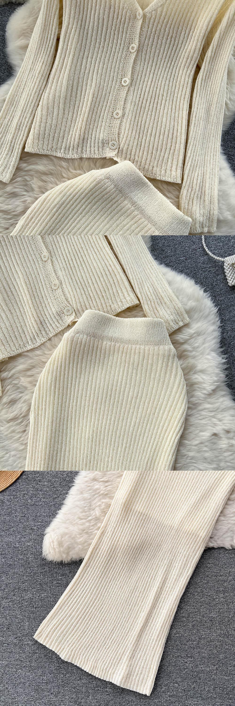 軽い馴染みのあるスタイルのツーピーススーツ女性の秋気質レディース長袖ニットカーディガントップミドル丈ヒップ丈スカート ロング オータム 秋物 lyxaj26588063020