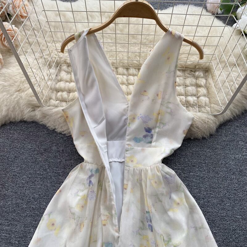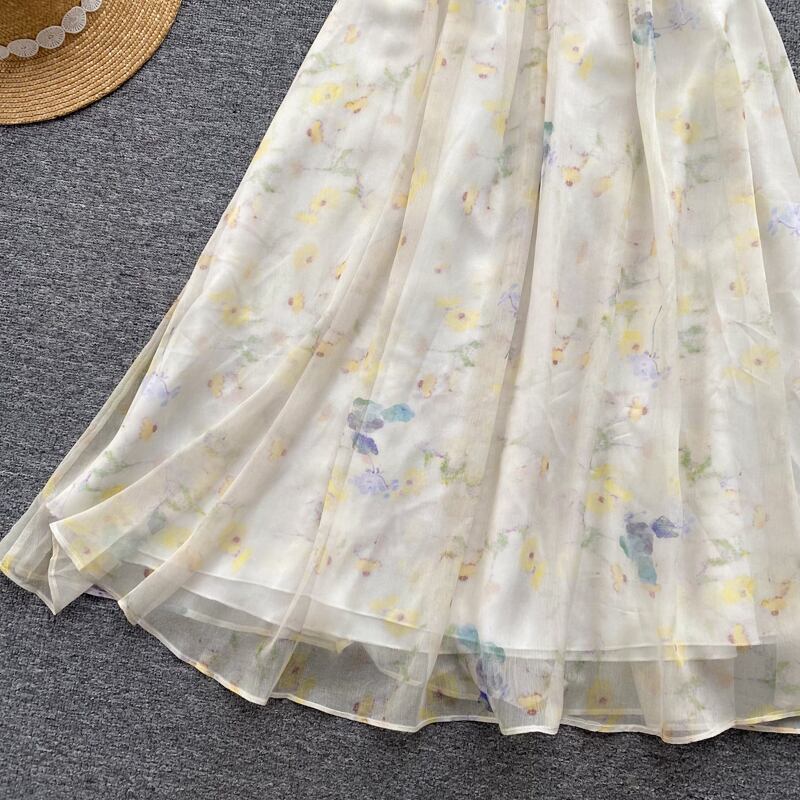 メッシュ花柄シフォン V ネック サスペンダー ドレス女性の夏の小さなセクシーなプリンセス初恋ティー ブレーク フェアリー スカート サマー 夏物 Vネック lyxaj99794966494