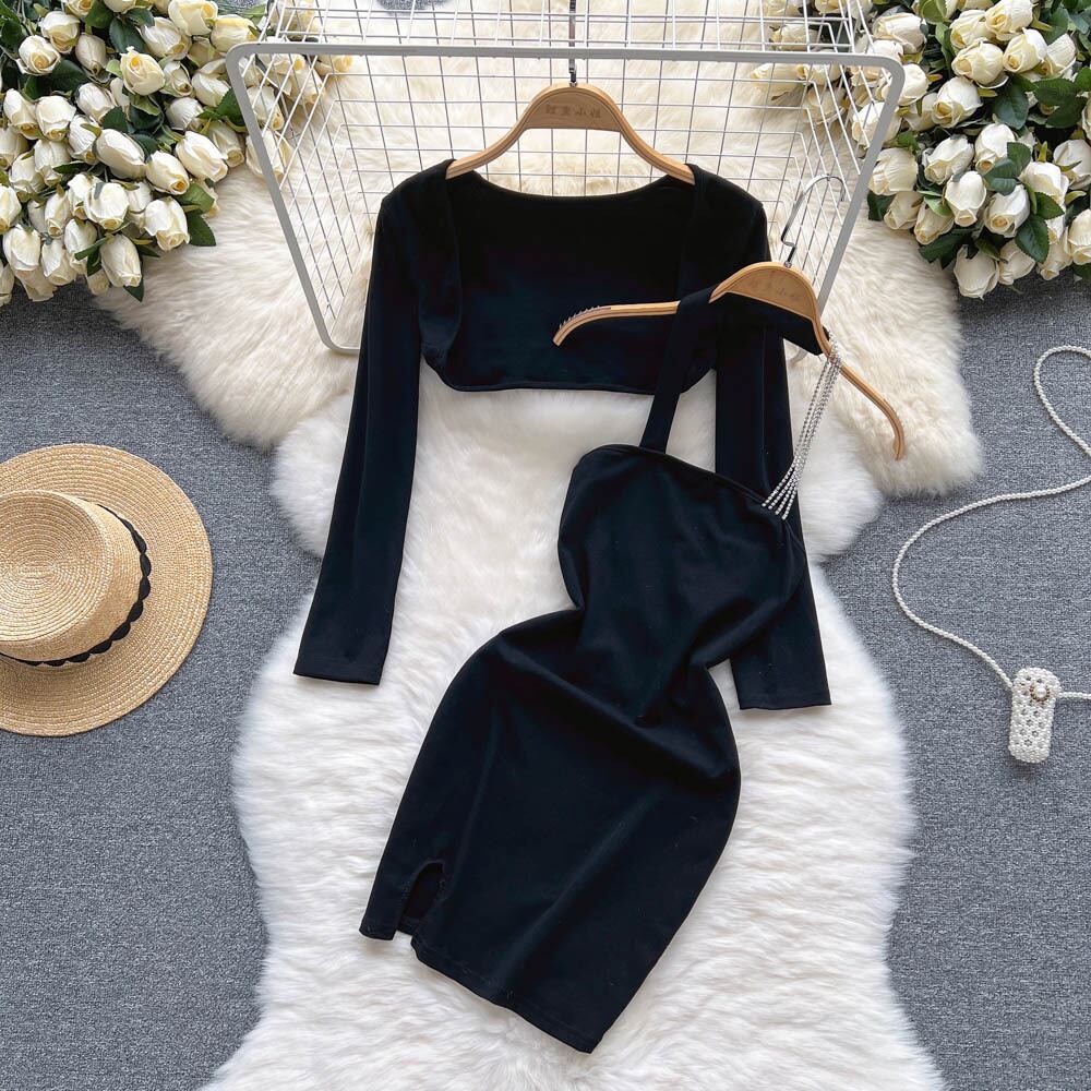 ネットレッドホットツーピースホットガールショートチョッキカーディガントップ女性のスリットスリムフィットウエストホルタードレス lyxaj87560708713
