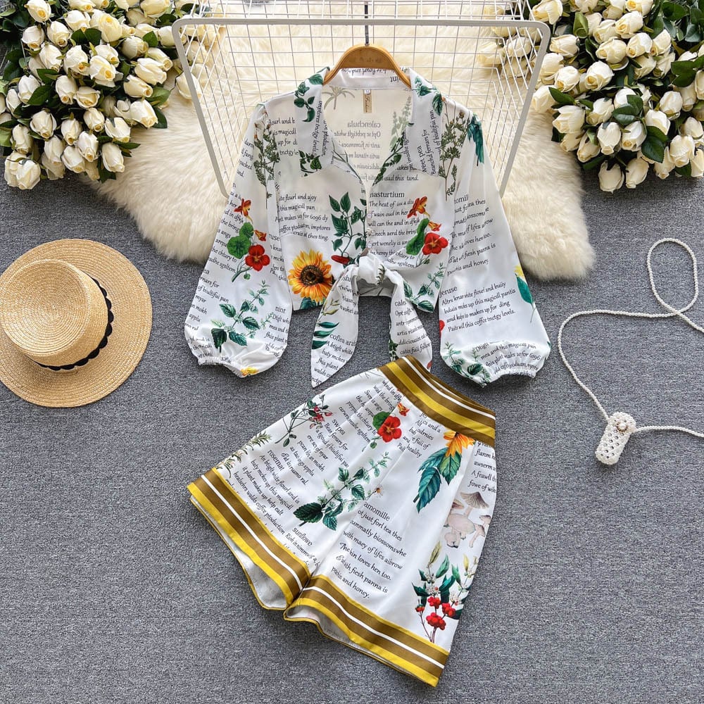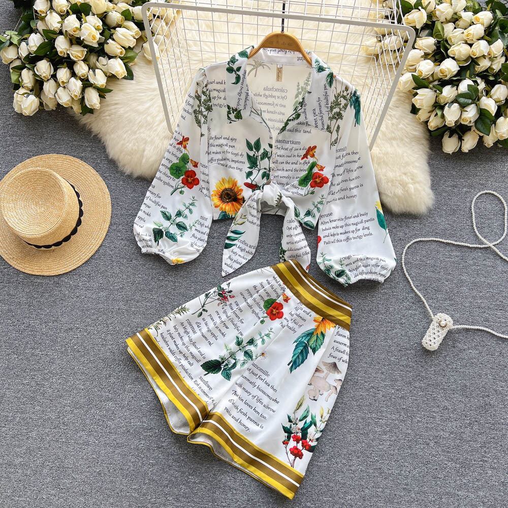 今年人気の綺麗なツーピーススーツ女性の夏の小柄レースアップシャツトップハイウエストワイドレッグショーツ ハイウェスト サマー 夏物 ブルマー ワイドパンツ lyxaj62430619449