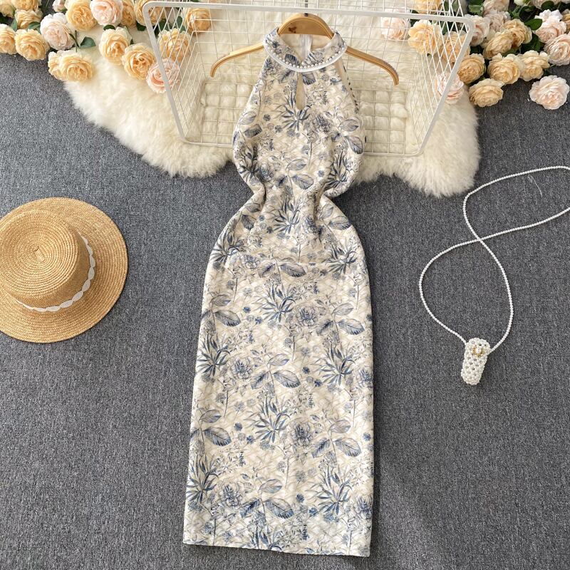 レトロなプリント ドレス スカート レディース高貴でエレガントな気質の女性のハイエンド ドレス女性の夏のスリム バッグ ヒップ スカート サマー 夏物 lyxaj60601209503