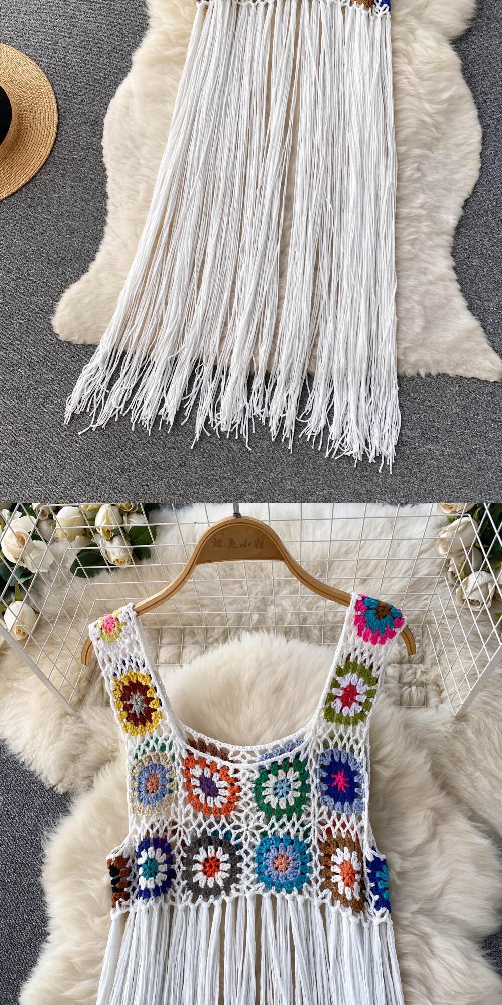 -quality cold wind hook flower hollow fringed dress summer women's French chic stunning vest skirt trend サマー 夏物 スカート フラワーデザイン lyxaj90620425309