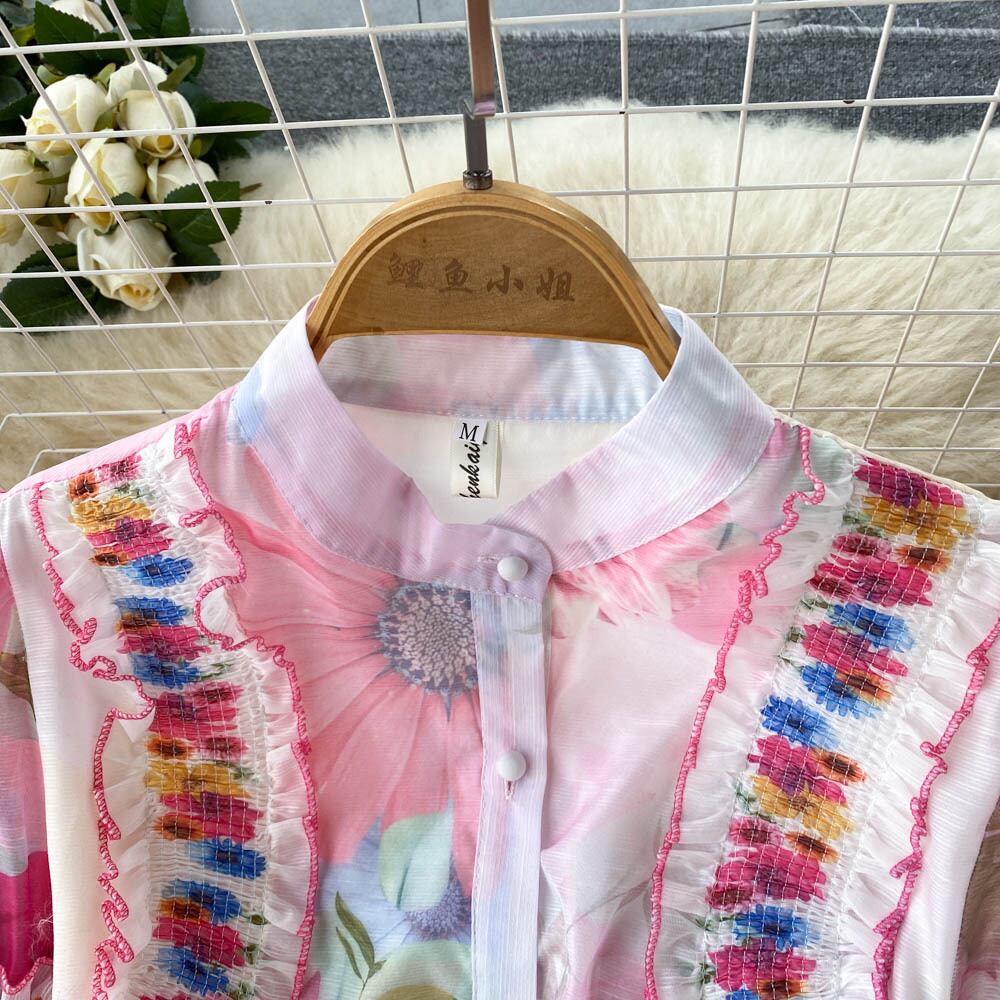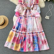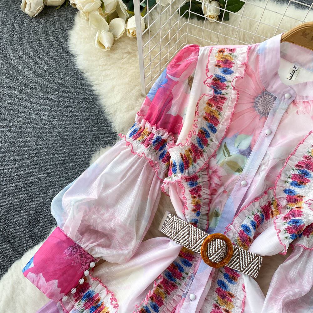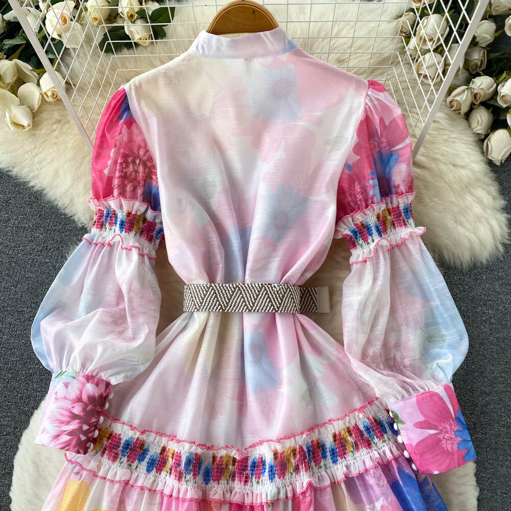 エスニック スタイル ランタン スリーブ ドレス夏の女性のフランスの美しいウエスト スリムな印刷気質 A ライン ロング スカート ランタンスリーブ サマー 夏物 Aライン lyxaj90154010052