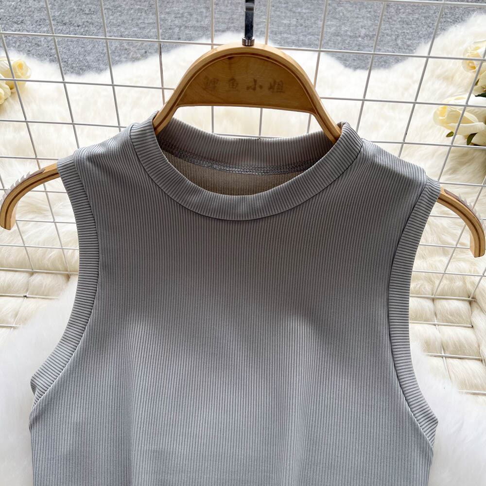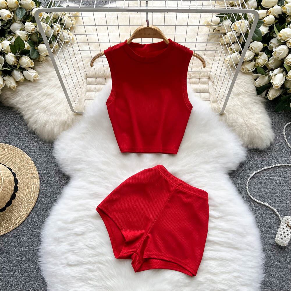 ホットガールラウンドネックノースリーブショートベスト tシャツ女性のオールマッチスーツ夏の新しいハイウエストワイドレッグショーツ 2 点セット サマー 夏物 ブルマー Oネック lyxaj50006942851