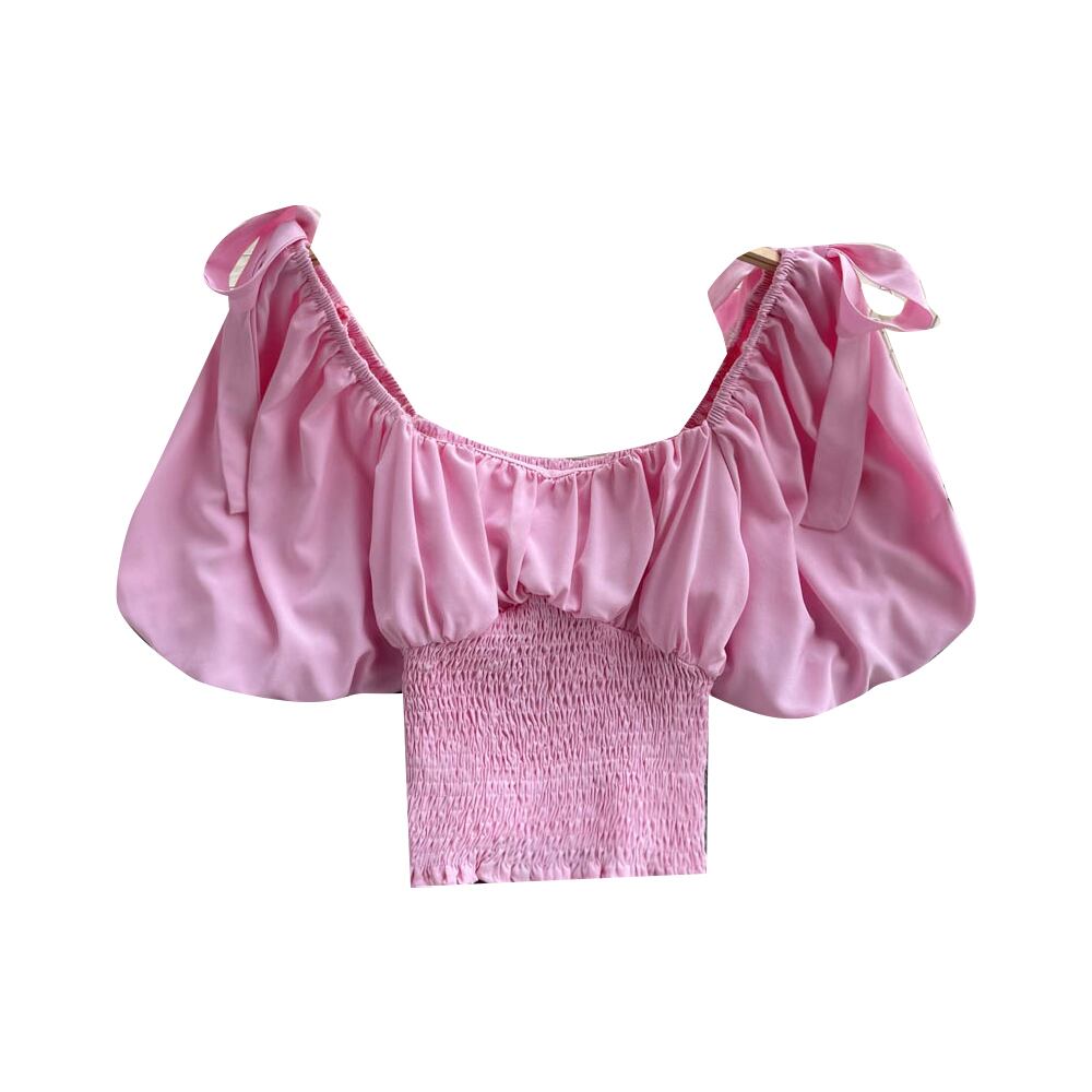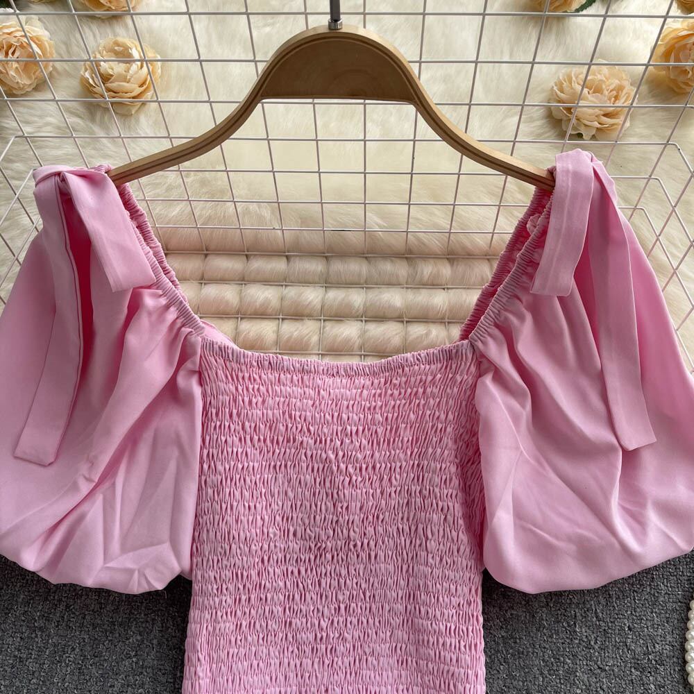 夏の新しいデザイン小さなフレンチ スクエア カラー パフ スリーブ ピンク シャツ女性の純粋な欲望スタイル ショート スリム トップ サマー 夏物 ピュア スクウェア lyxaj99204161430