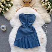 純粋な欲望ホットガールチューブトップドレスの女性は、2022年の夏に内外で着用する新しいスリムフィットデニムAラインスカート サマー 夏物 lyxaj52150972034