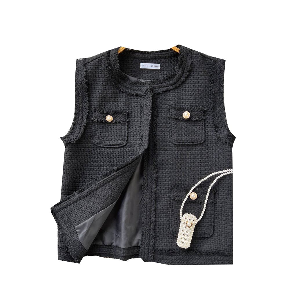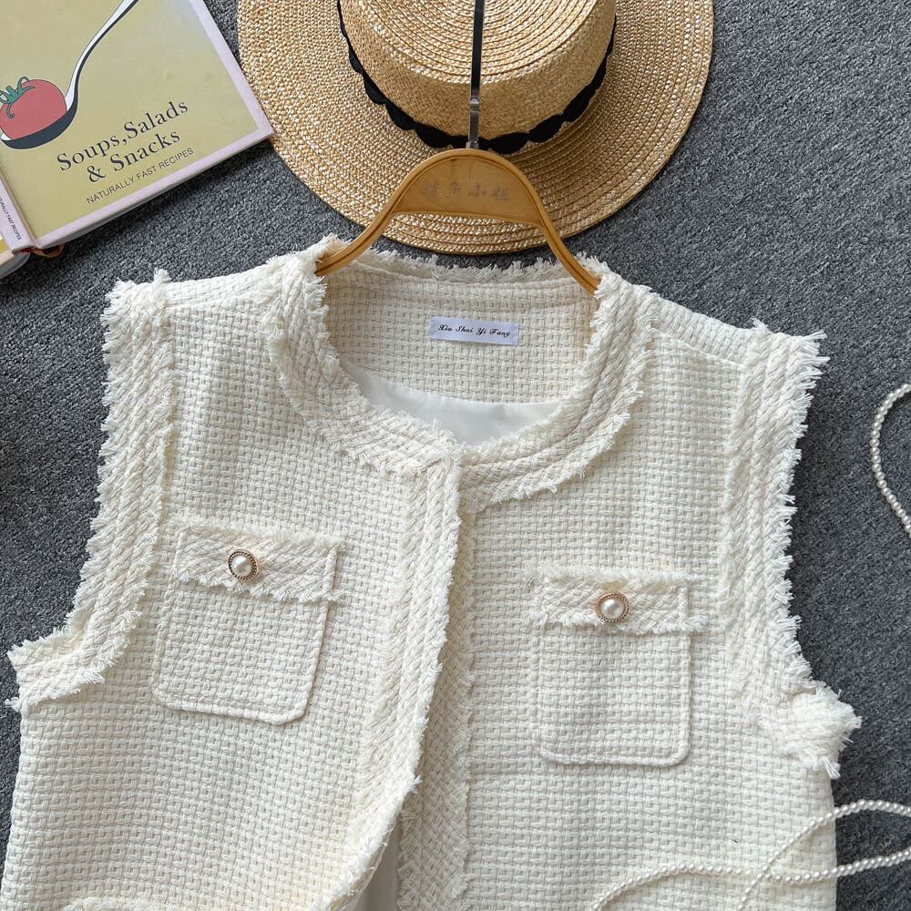 Small fragrance style niche design feeling raw edge sleeveless vest jacket 2022 women's early autumn short temperament vest top trendy ショート オータム 秋物 ノースリーブ lyxaj94569122494