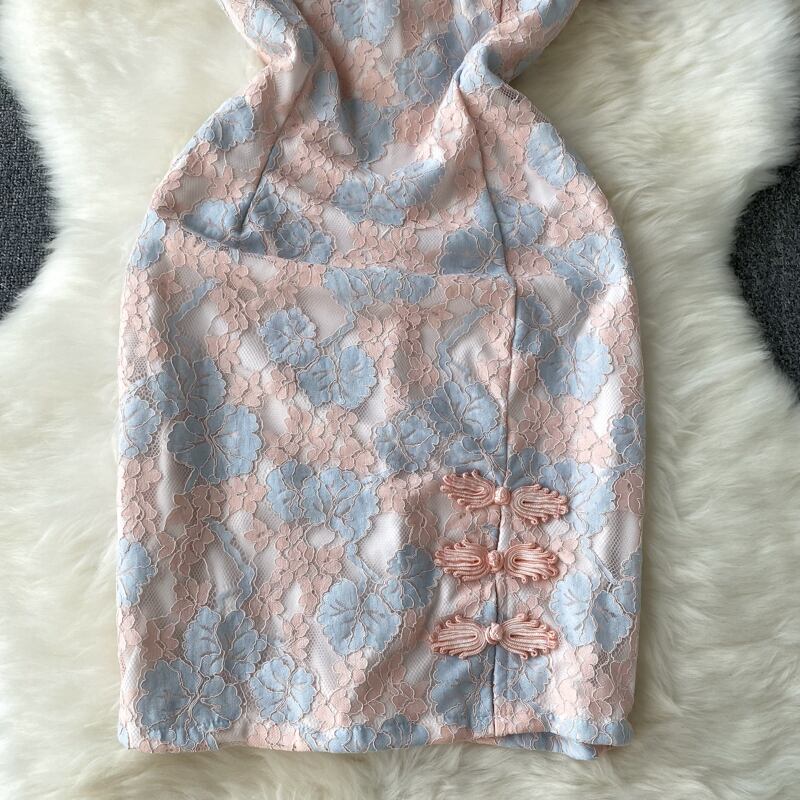 軽やかスタイルアップ チャイナドレス 夏物 レディース フレンチシック 綺麗め スリム 着痩せ ヒップ ショートスカート トレンド サマー lyxaj29218495256