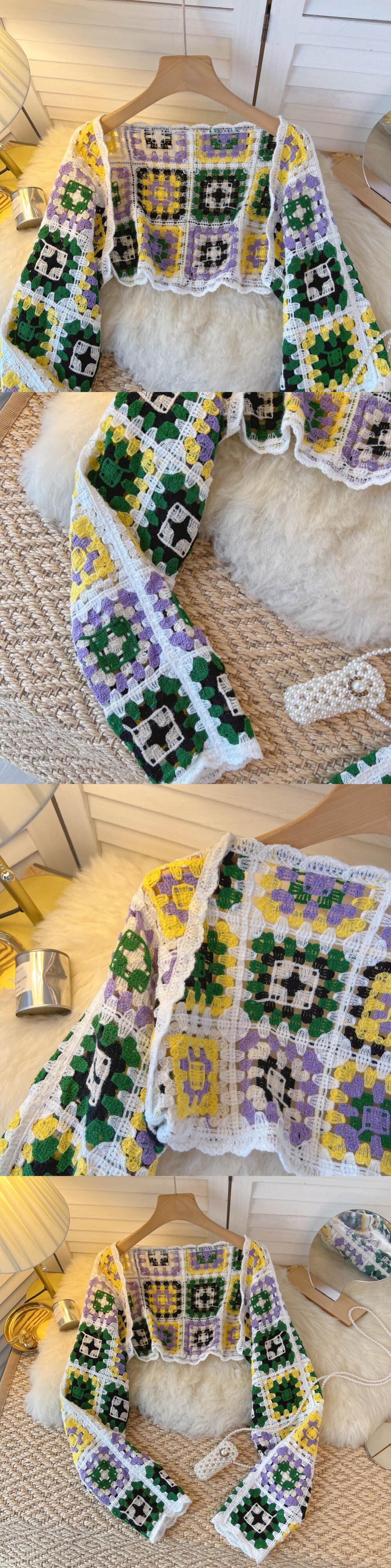 Shawl summer with skirt plaid hollow long-sleeved knitted sunscreen cardigan coat women's thin loose short top ショート ロング カーディガン サマー 夏物 スカート lyxaj42119400244