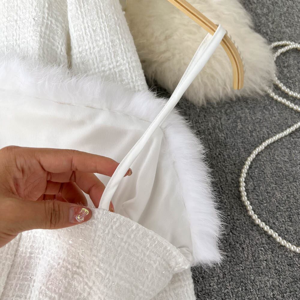 セレブリティXiaoxiangfengスーツウエスタンスタイルローエッジステッチショールカーディガンショートトップサスペンダードレス2点セット lyxaj97797475402