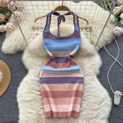 ピュアラストスタイル デザイン感 小当たりカラー ストライプ ホルターワンピース 夏新作 ニットヒップ ショートスカート トレンド サマー 夏物 lyxaj17225502585