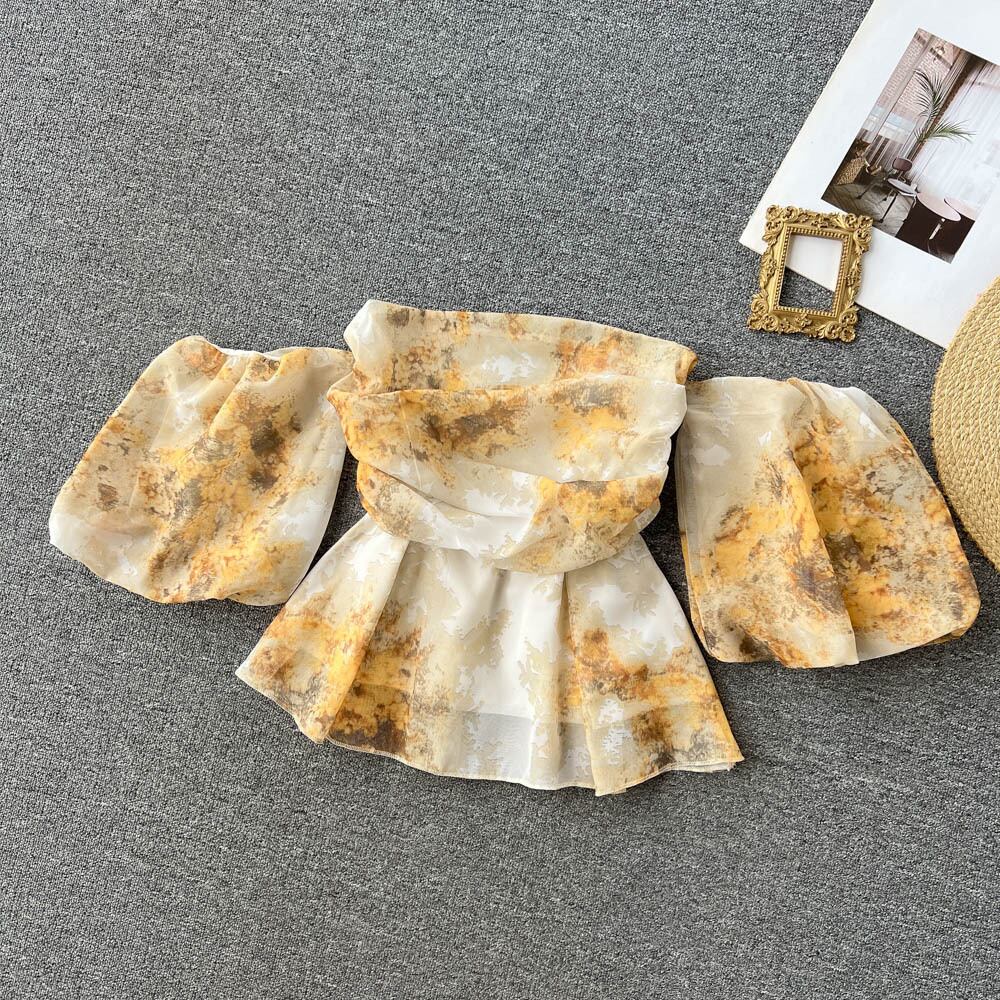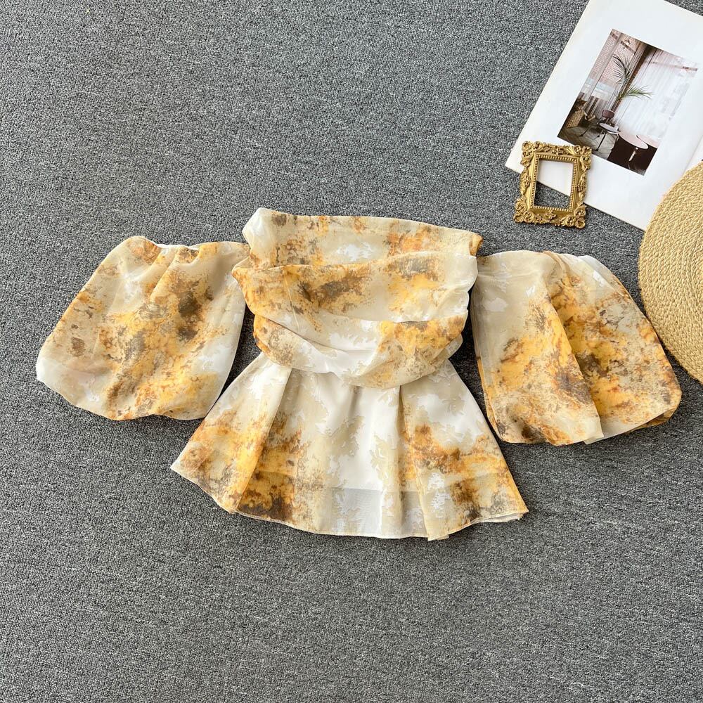 フレンチデザインセンスニッチプリントワンショルダーチューブトップシャツトップ夏レディース半袖ウエストシックで綺麗な小さめシャツ サマー 夏物 lyxaj93920228476