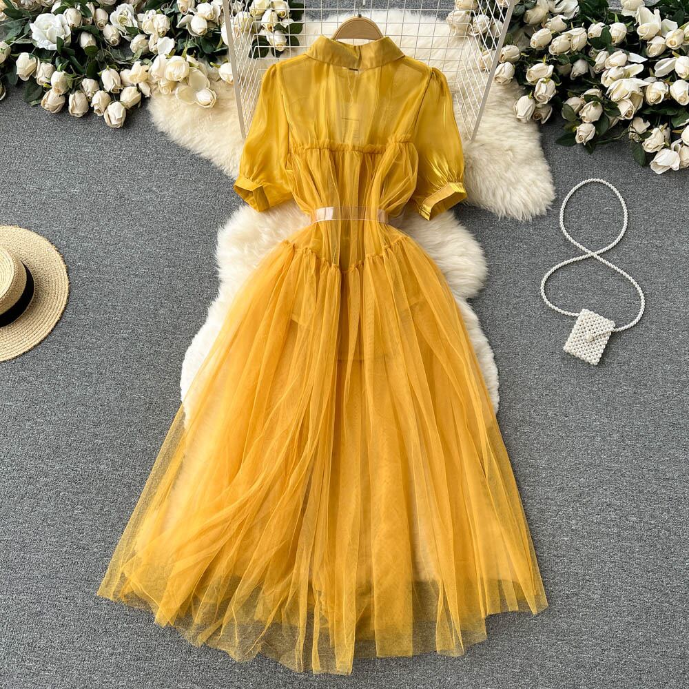 フランスの甘い初恋の気質の甘くてスパイシーなフライドストリートラペルドレスハイウエストと薄いシースルーメッシュロングスカート ハイウェスト 大人ガーリー スウィート キュート カジュアル lyxaj68349269281