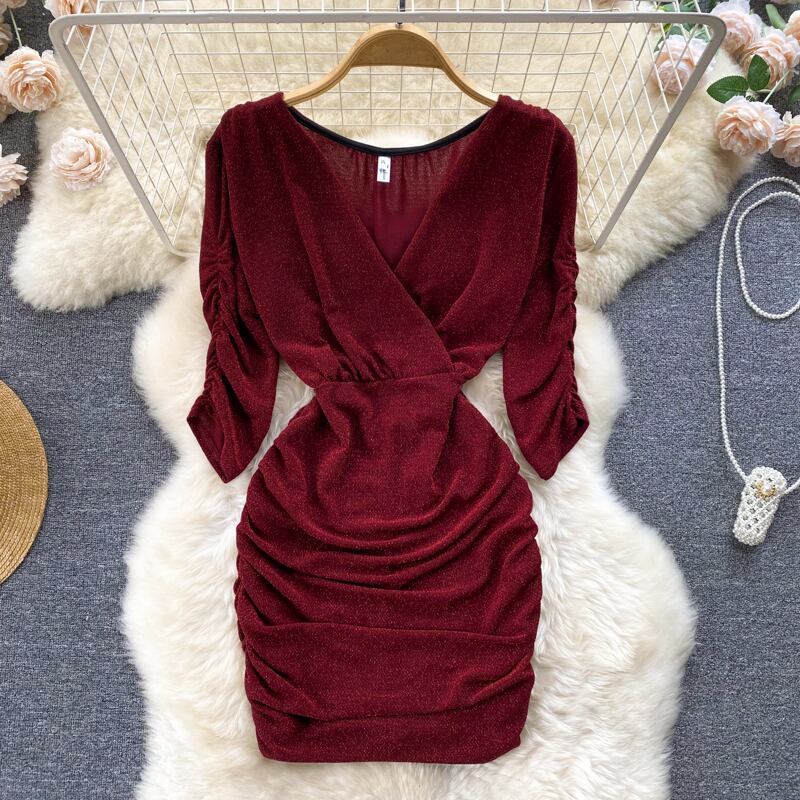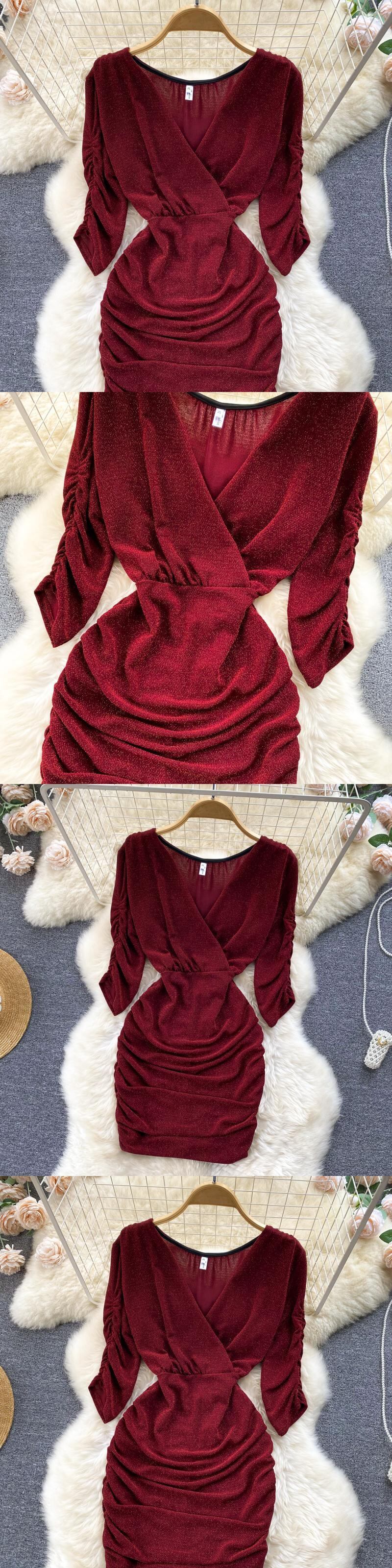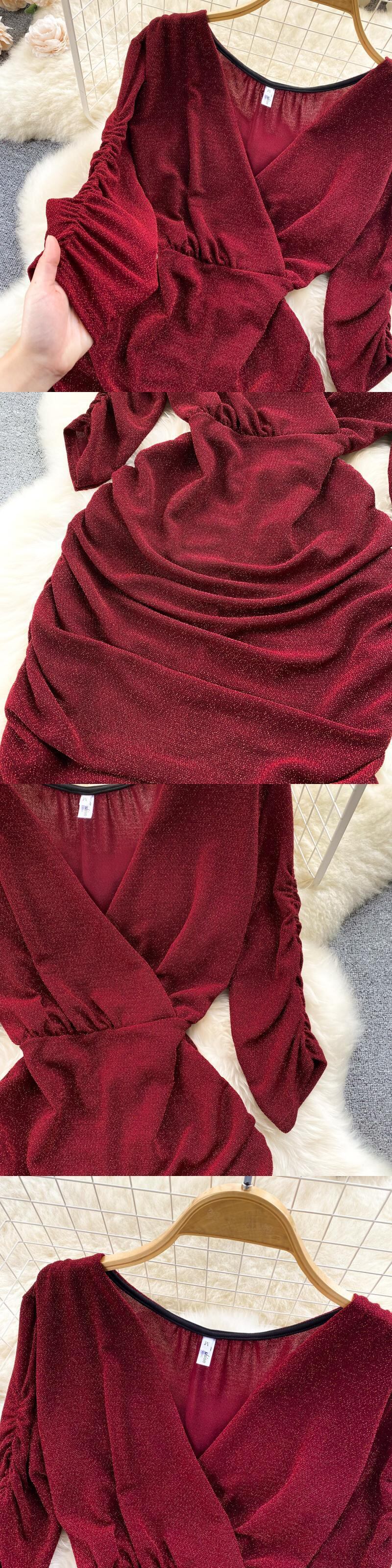 春と夏の新しいクロス V ネック プリーツ セクシーな女性の気質のドレス スプリング 春物 サマー 夏物 Vネック lyxaj58664476347