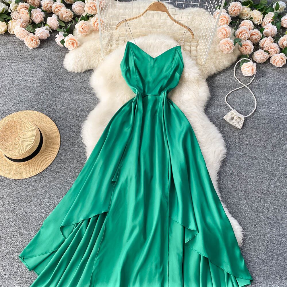 セレブの軽やかでおなじみのVネックサスペンダー キレイめバックドレス フェミニン気質 オフショルダー ハイウエスト イレギュラー 海辺 休日 ビーチドレス lyxaj3253406231
