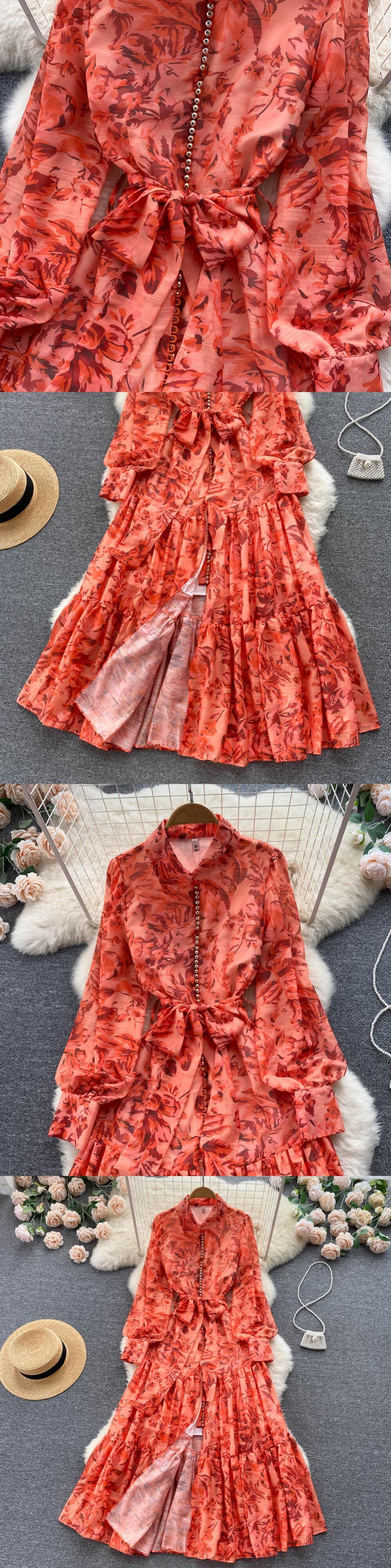 Gao Leng Yujie スタイルのドレスの女性の春と秋の 2022 新しいスタイルのレースのウエストスリムでエレガントな気質大スイングロングスカート スプリング 春物 オータム 秋物 lyxaj53734804367