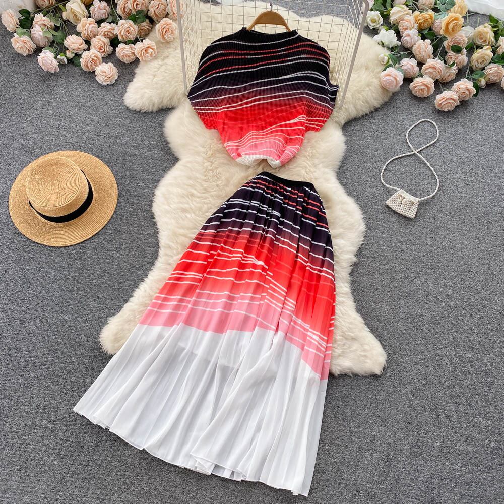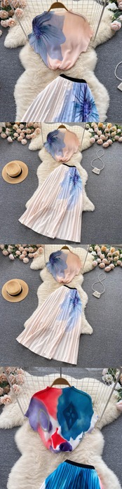 ソルトシリーズ ガーリー感のある着まわしツーピーススーツ レディース 夏 ショートTシャツ トップス ハイウエスト ミドル丈 プリーツスカート ハイウェスト サマー 夏物 lyxaj50916147531
