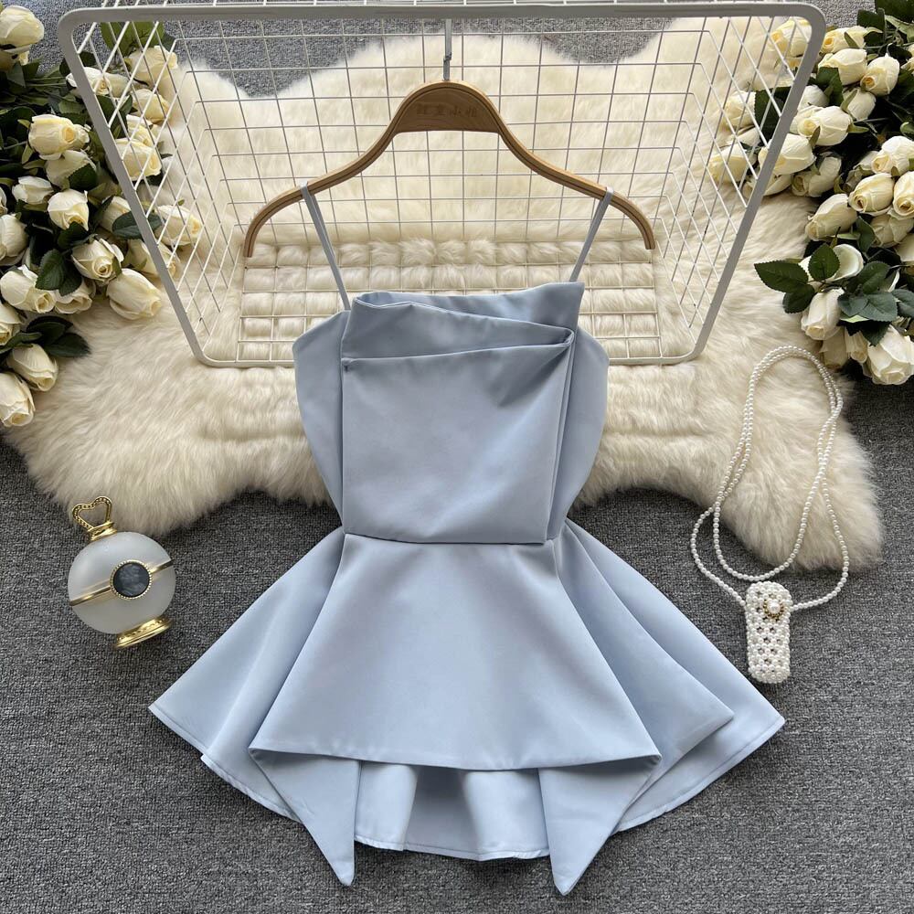 ワンショルダーチューブトップサスペンダースカートレディースデザインシックな夏の新気質ウエスト痩身ドレス サマー 夏物 lyxaj70605262544