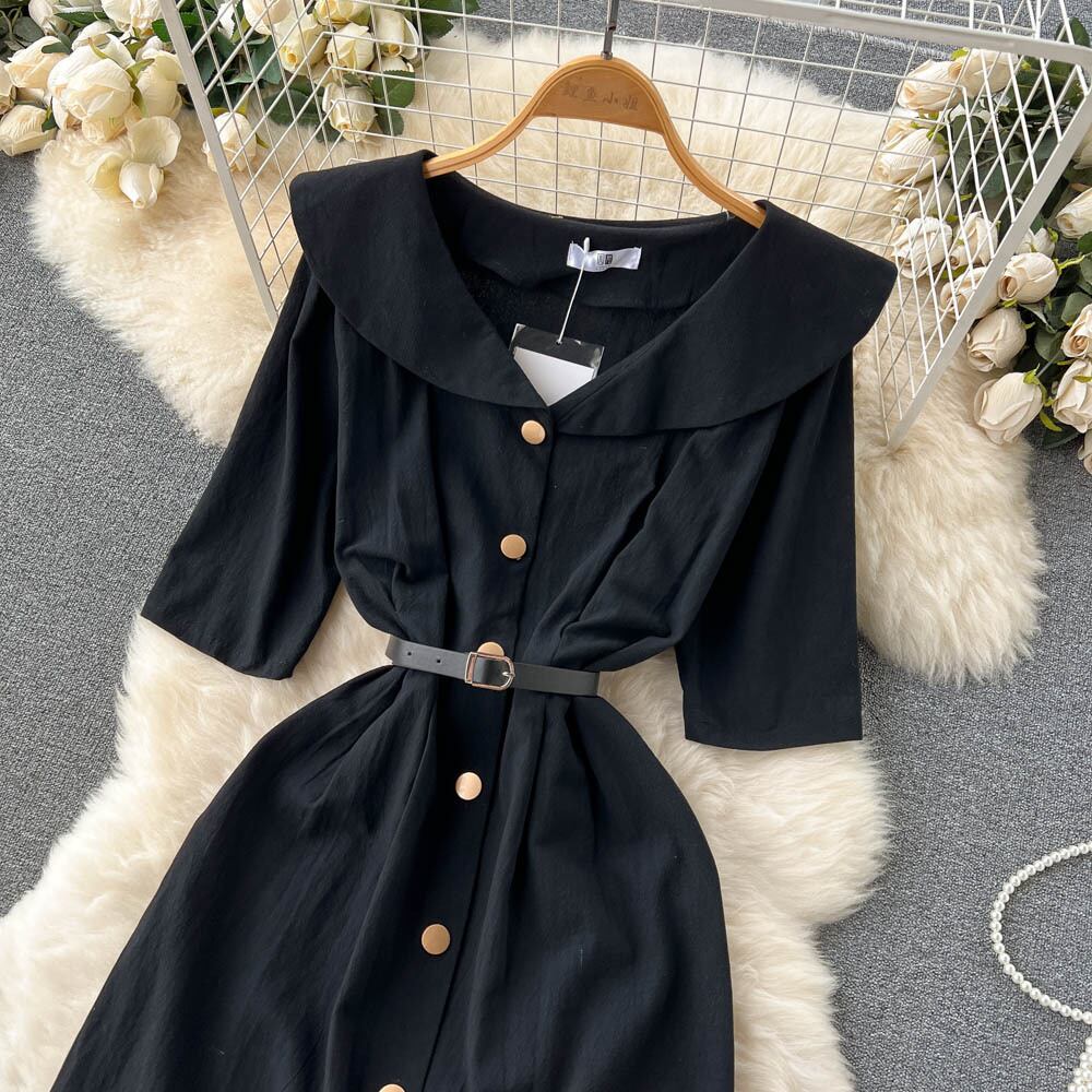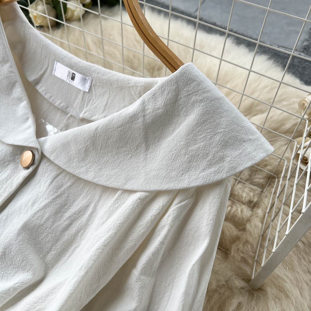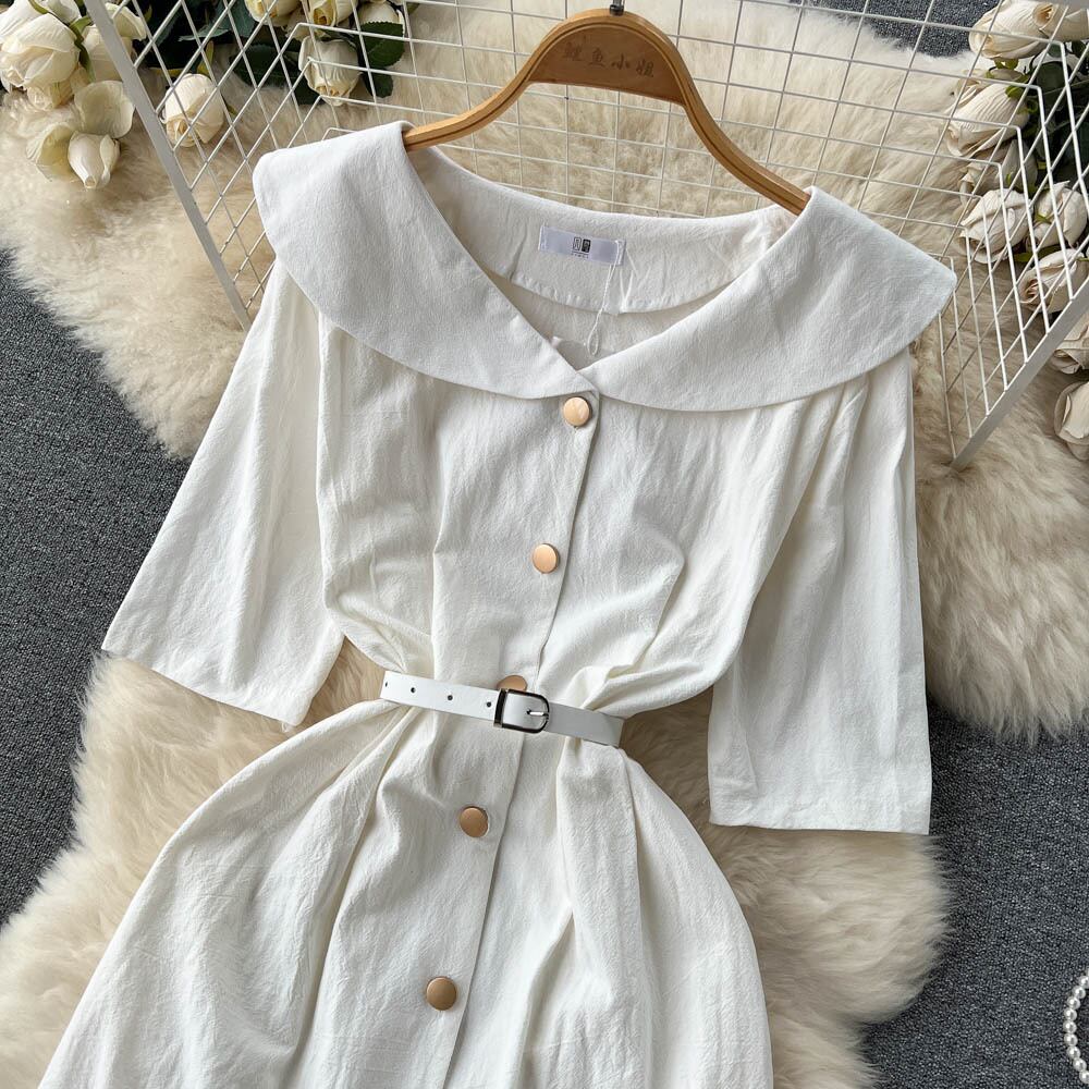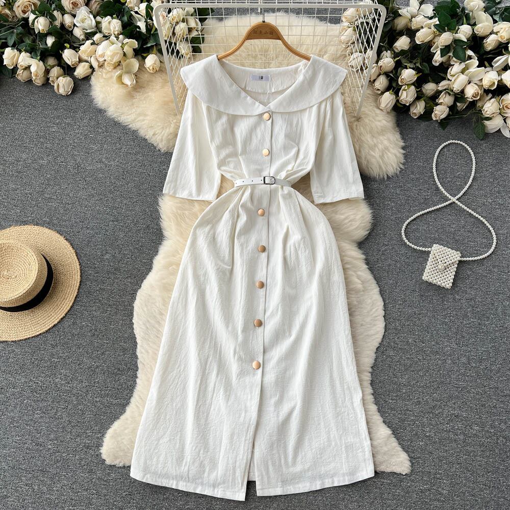 上質なウエストと薄いドールカラーのドレス夏の女性のフレンチ気質半袖白シャツドレス ロング ホワイト サマー 夏物 スカート lyxaj25910863221
