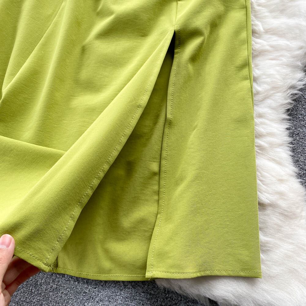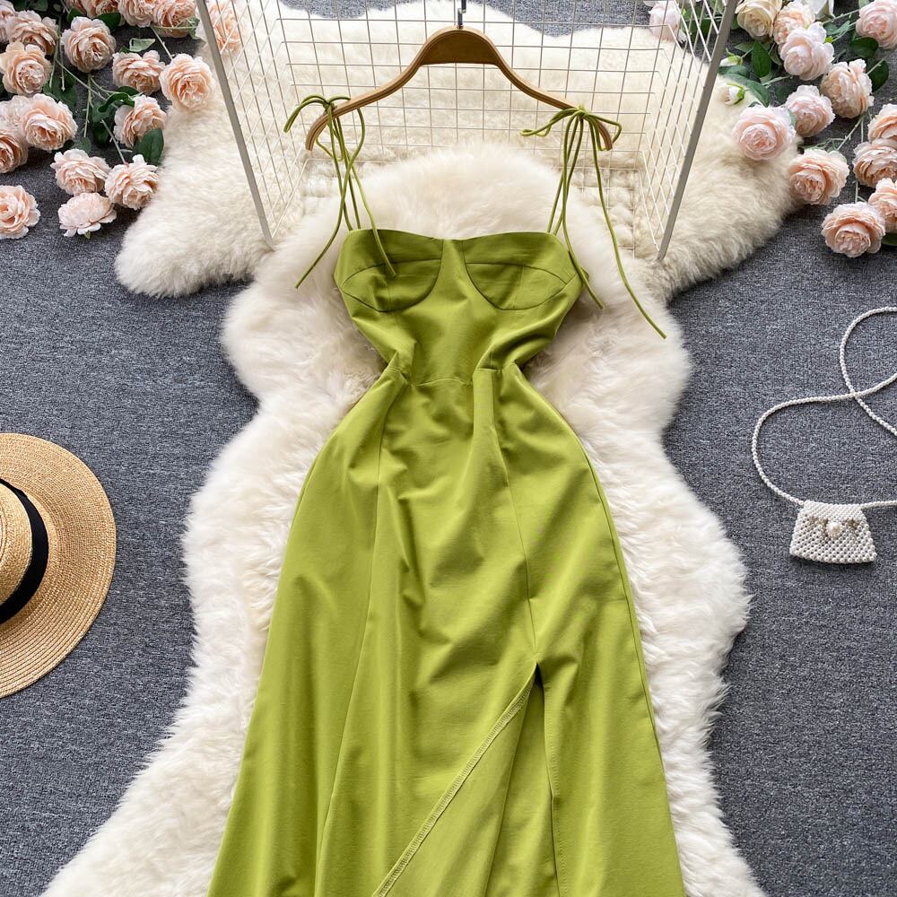 海辺の休日のスカートの女神のファンの気質の自己修養ミッドレングスの計画のスプリットホワイトサスペンダードレスの女性の夏のドレス サマー 夏物 lyxaj6450127632